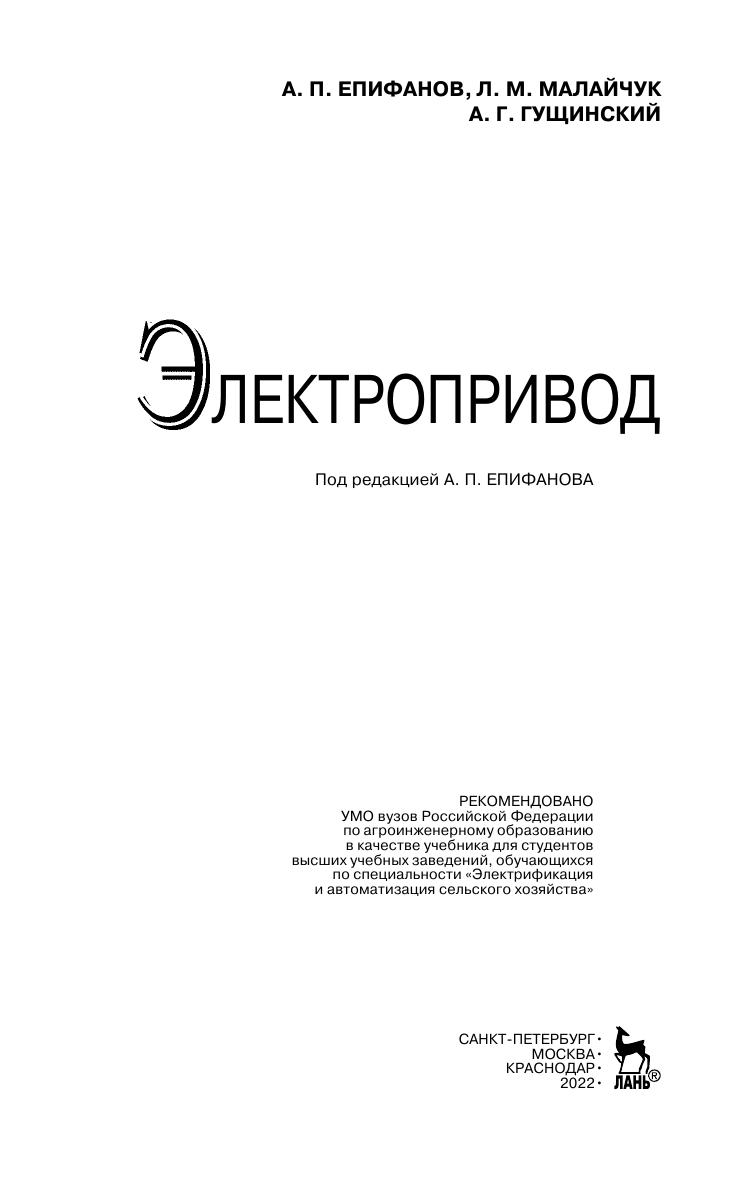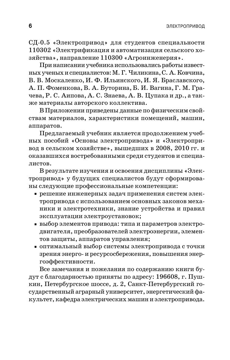 В книге рассмотрены общие вопросы электропривода, а также электропривод основных сельскохозяйственных машин, механизмов и агрегатов: центрифуги, транспортеры, насосы и вентиляторы, крановые механизмы и машины с кривошипно-шатунным механизмом, машины для приготовления и раздачи кормов, пилорамы. Учебник предназначен для студентов аграрных высших учебных заведений, обучающихся по специальности «Электрификация и автоматизация сельского хозяйства». Может быть рекомендован студентам специальностей «Механизация сельского хозяйства», «Механизация переработки сельскохозяйственной продукции», «Технология обслуживания машин в АПК», бакалаврам и магистрам, проходящим подготовку по направлению «Агроинженерия».