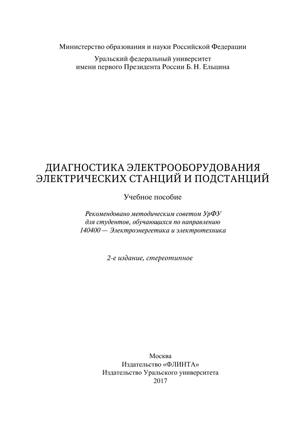 Диагностика электрооборудования электрических станций и подстанций
