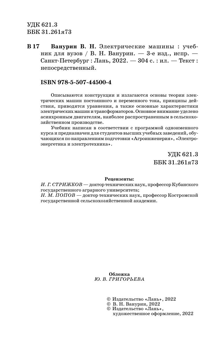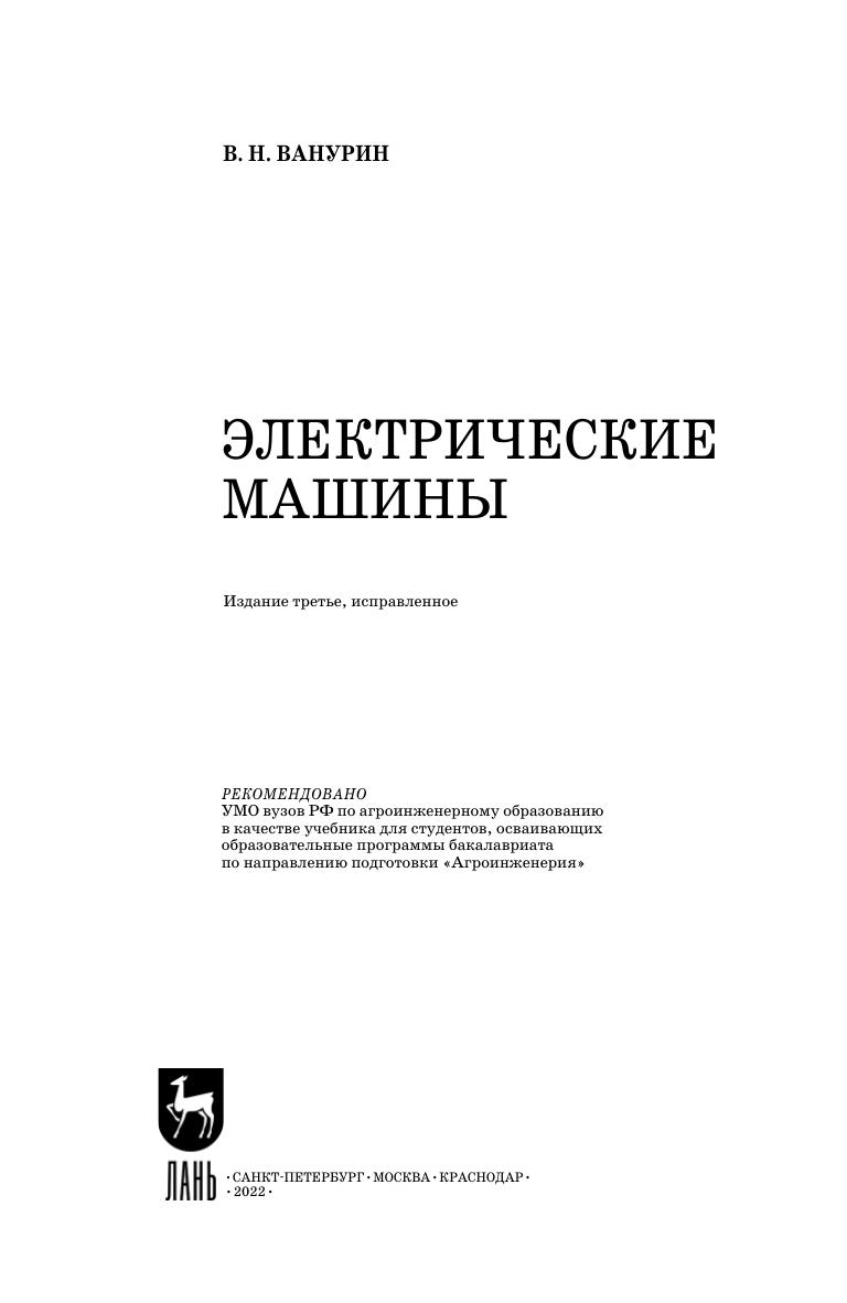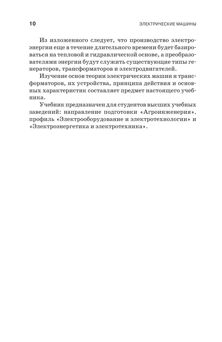 Описываются конструкции и излагаются основы теории электрических машин постоянного и переменного тока, принципы действия, приводятся уравнения, а также основные характеристики электрических машин и трансформаторов. Основное внимание уделено асинхронным двигателям, наиболее распространённым в сельскохозяйственном производстве. Учебник написан в соответствии с программой одноименного курса и предназначен для студентов высших учебных заведений, обучающихся по направлениям подготовки «Агроинженерия», «Электроэнергетика и электротехника».