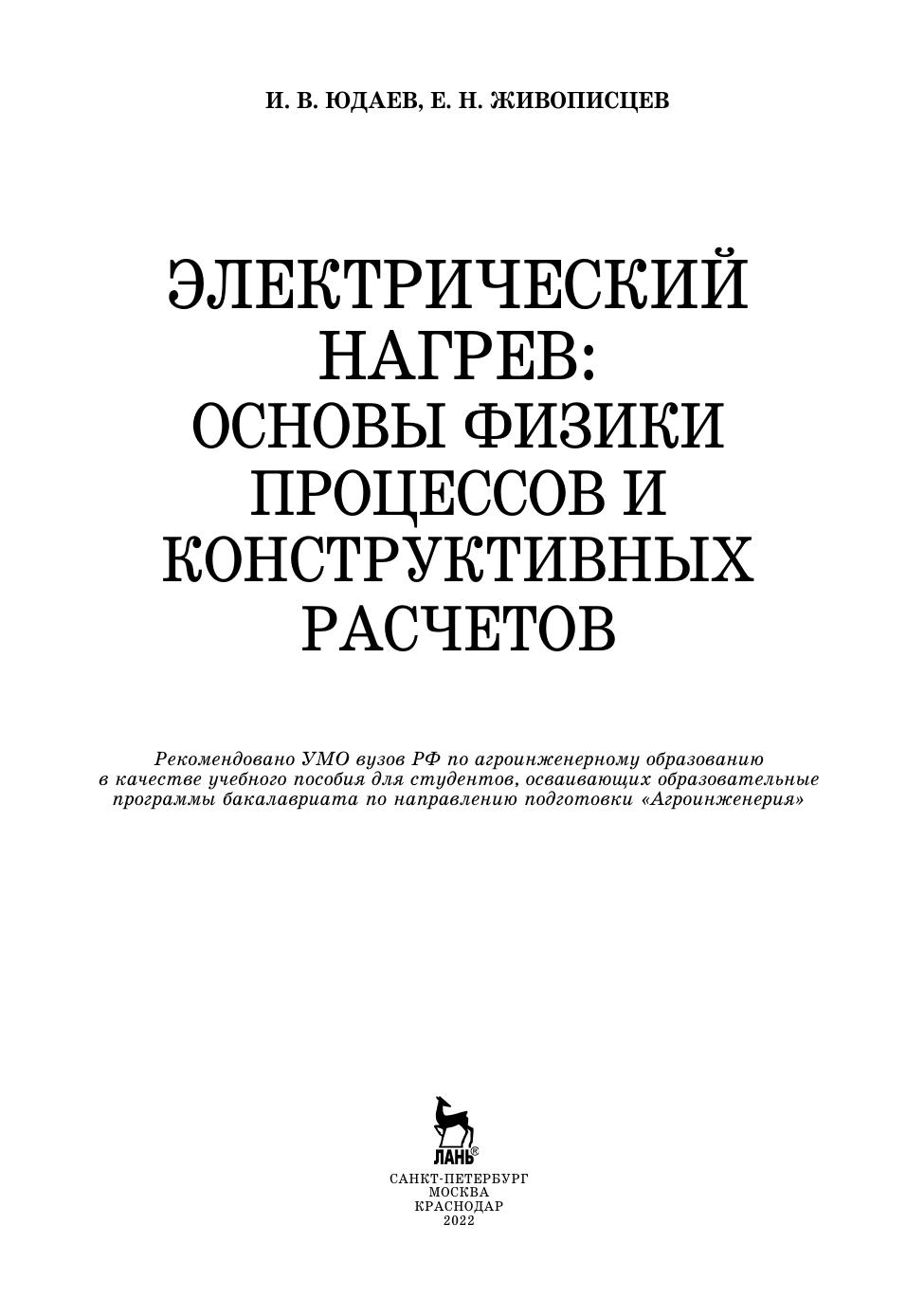 В учебном пособии представлены общие закономерности преобразования электрической энергии в тепловую, а также методы расчёта, выбора и область применения электротермического оборудования, используемого в сельскохозяйственном производстве. В пособии приведены примеры теплотехнических расчетов и электротермического оборудования, представлены тестовые задания и контрольные вопросы для оценки освоения и самостоятельного контроля изученного материала. Пособие разработано в соответствии с основными разделами Федерального Государственного образовательного стандарта высшего образования по направлению подготовки бакалавров «Агроинженерия», профиля «Электрооборудование и электротехнологии» и написано в соответствии с примерной программой дисциплины «Светотехника и электротехнология». Учебное издание рассчитано на преподавателей, студентов и специалистов в области электрификации сельского хозяйства, электрического нагрева и электротехнологии.