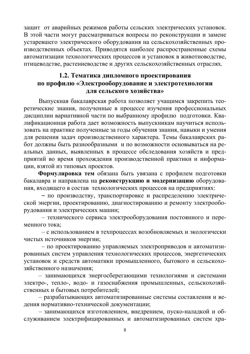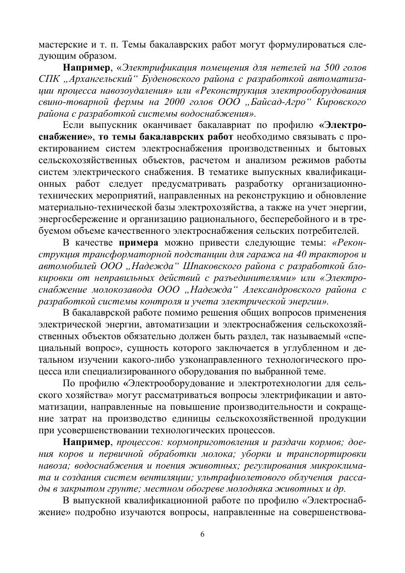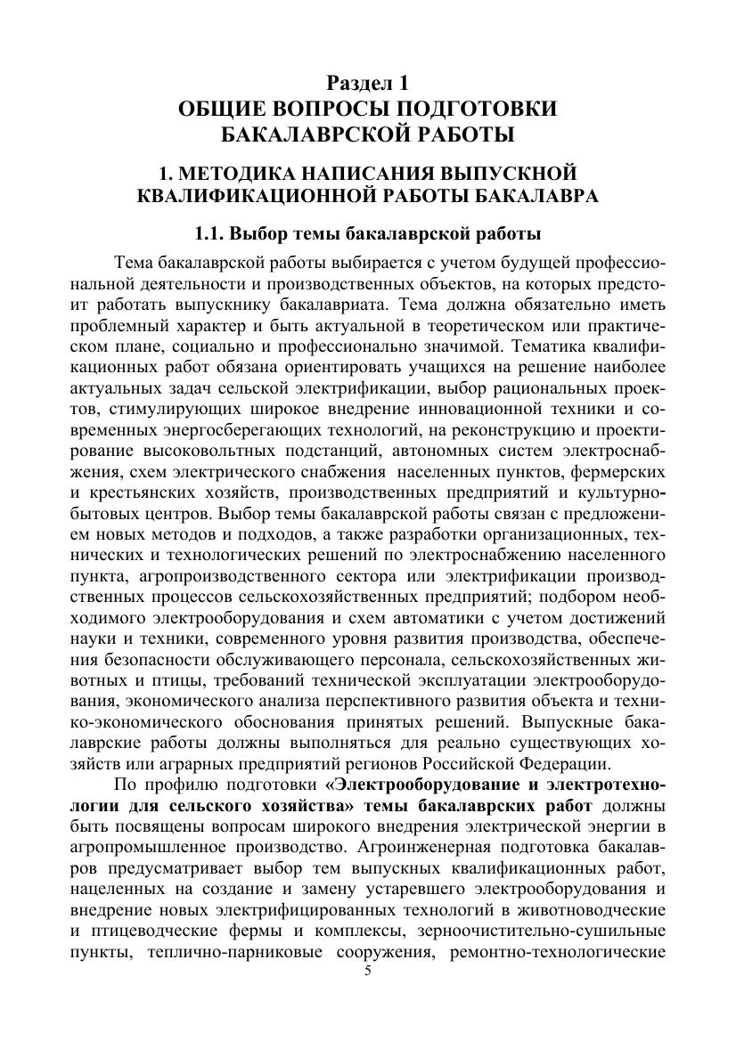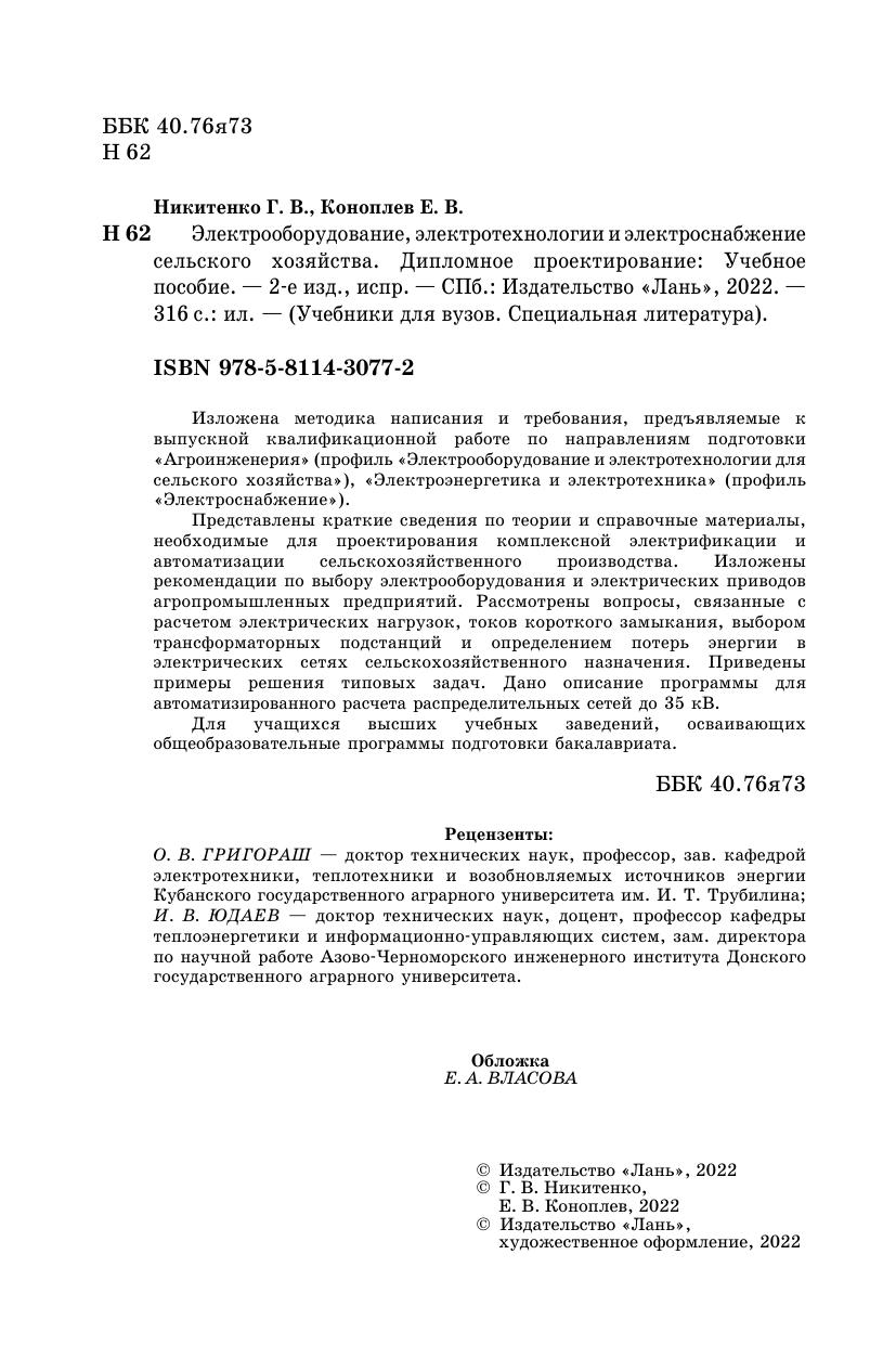 Изложена методика написания и требования, предъявляемые к выпускной квалификационной работе по направлениям подготовки «Агроинжинерия» (профиль «Электрооборудование и электротехнологии для сельского хозяйства»), «Электроэнергетика и электротехника» (профиль «Электроснабжение»). Представлены краткие сведения по теории и справочные материалы, необходимые для проектирования комплексной электрификации и автоматизации сельскохозяйственного производства. Изложены рекомендации по выбору электрооборудования и электрических приводов агропромышленных предприятий. Рассмотрены вопросы, связанные с расчетом электрических нагрузок, токов короткого замыкания, выбором трансформаторных подстанций и определением потерь энергии в электрических сетях сельскохозяйственного назначения. Приведены примеры решения типовых задач. Дано описание программы для автоматизированного расчета распределительных сетей до 35 кВ. Для учащихся высших учебных заведений, осваивающих общеобразовательные программы подготовки бакалавриата.