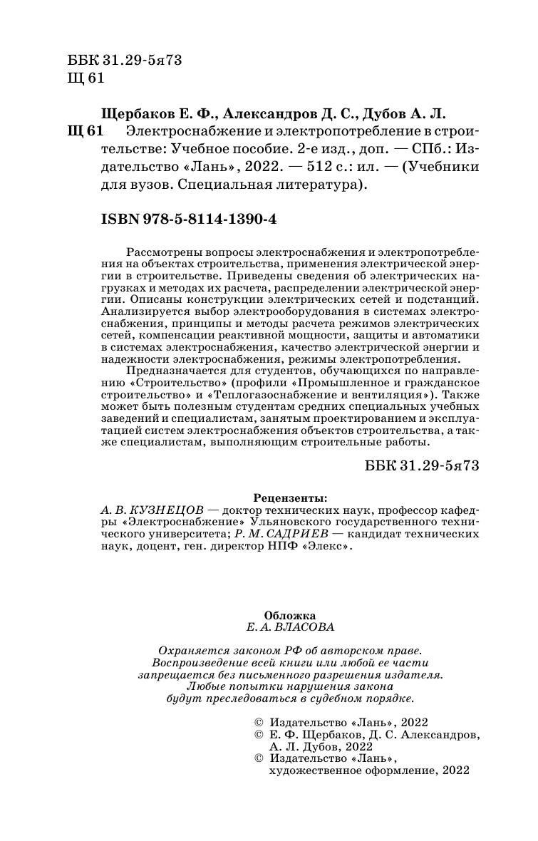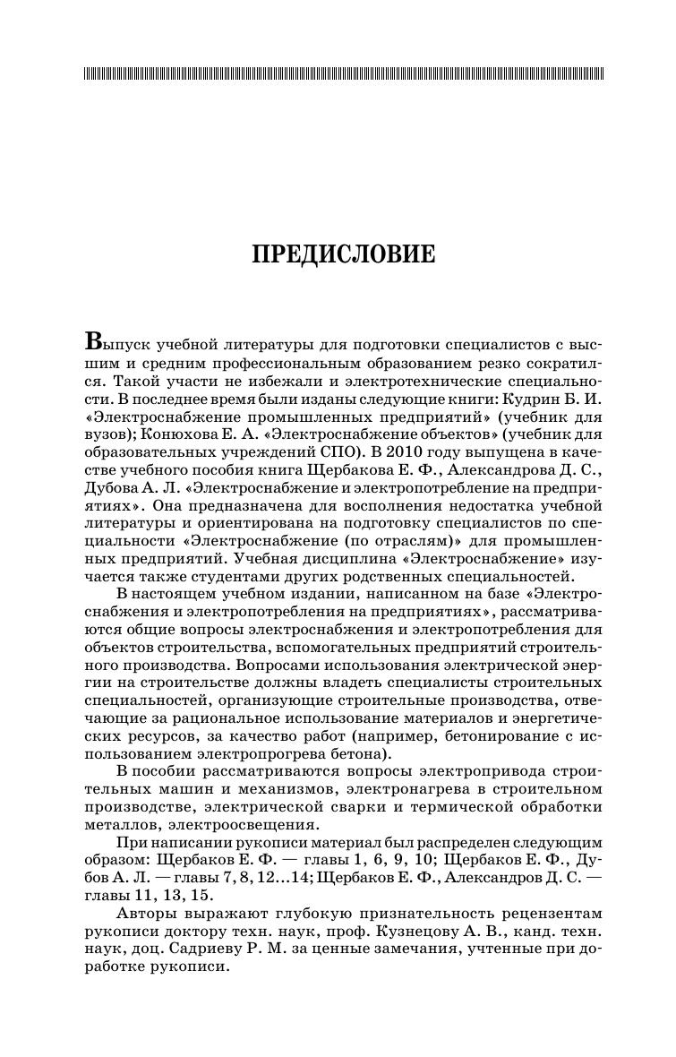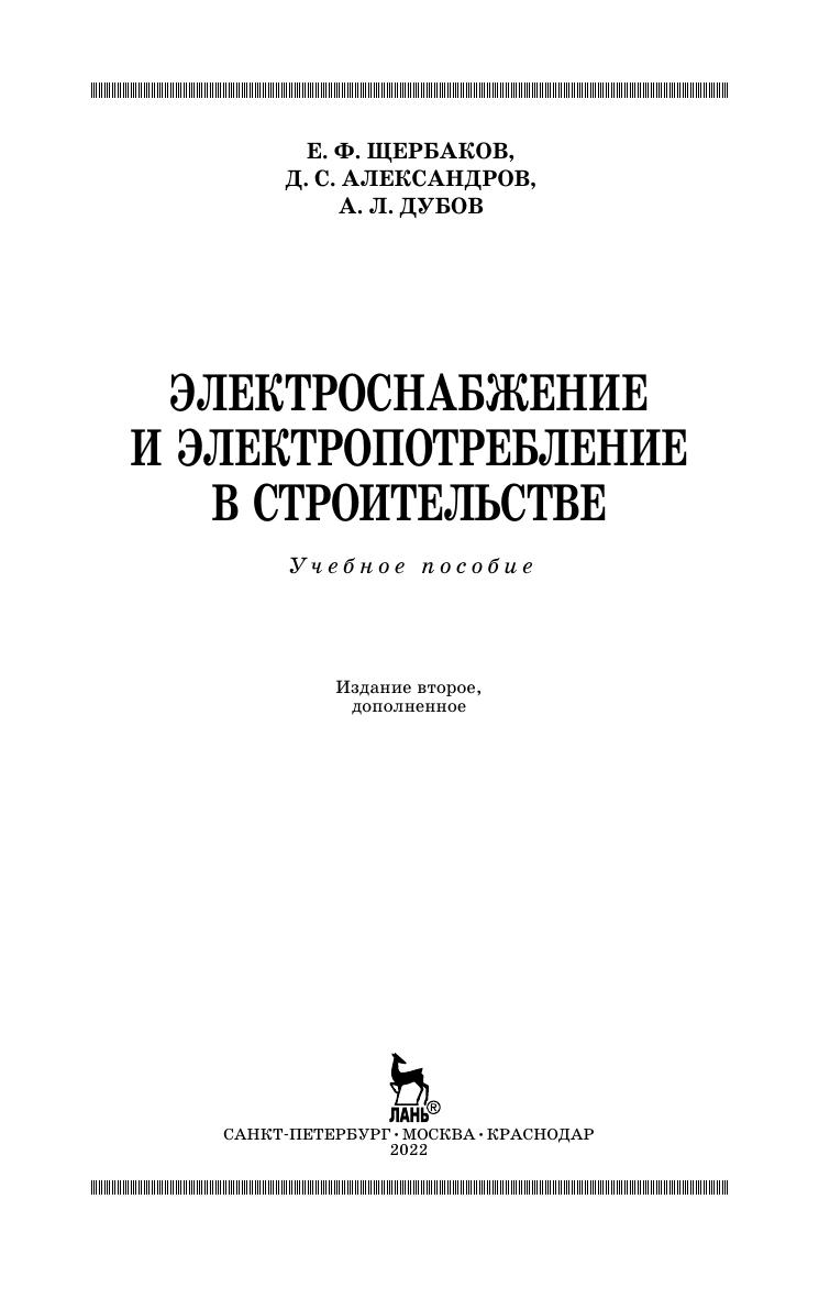 Рассмотрены вопросы электроснабжения и электропотребления на объектах строительства. Рассмотрены вопросы применения электрической энергии в строительстве. Приведены сведения об электрических нагрузках и методах их расчета, распределении электрической энергии. Описаны конструкции электрических сетей и подстанций. Рассматривается выбор электрооборудования в системах электроснабжения, принципы и методы расчета режимов электрических сетей, компенсации реактивной мощности, защиты и автоматики в системах электроснабжения, качество электрической энергии и надежности электроснабжения, режимы электропотребления. Предназначается в качестве учебного пособия для студентов, обучающихся по направлению «Строительство» (профили «Промышленное и гражданское строительство» и «Теплогазоснабжение и вентиляция»). Может быть полезным специалистам, занятым проектированием и эксплуатацией систем электроснабжения объектов строительства, а также специалистам, выполняющим строительные работы.