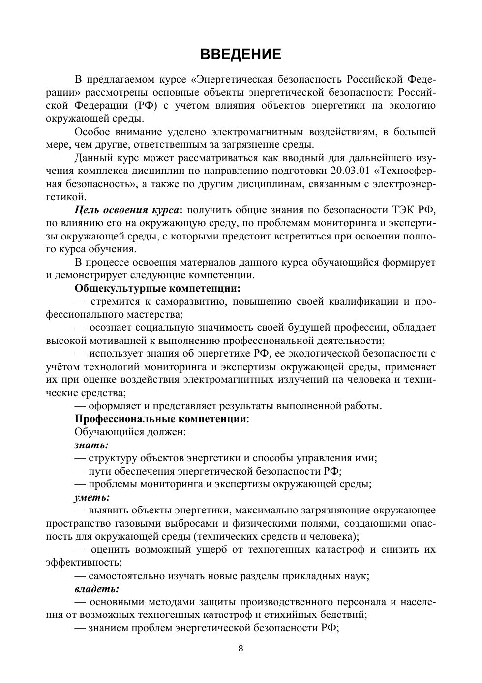 В настоящем курсе рассмотрены проблемы формирования электроэнергетического комплекса Российской Федерации и его безопасности. Содержание курса соответствует актуальным требованиям федерального государственного образовательного стандарта высшего образования. Для студентов вузов, обучающихся по инженерно-техническим направлениям. Может быть использован научными, инженерно-техническими работниками и аспирантами, занимающимися проблемами электроэнергетического комплекса Российской Федерации и его безопасности.