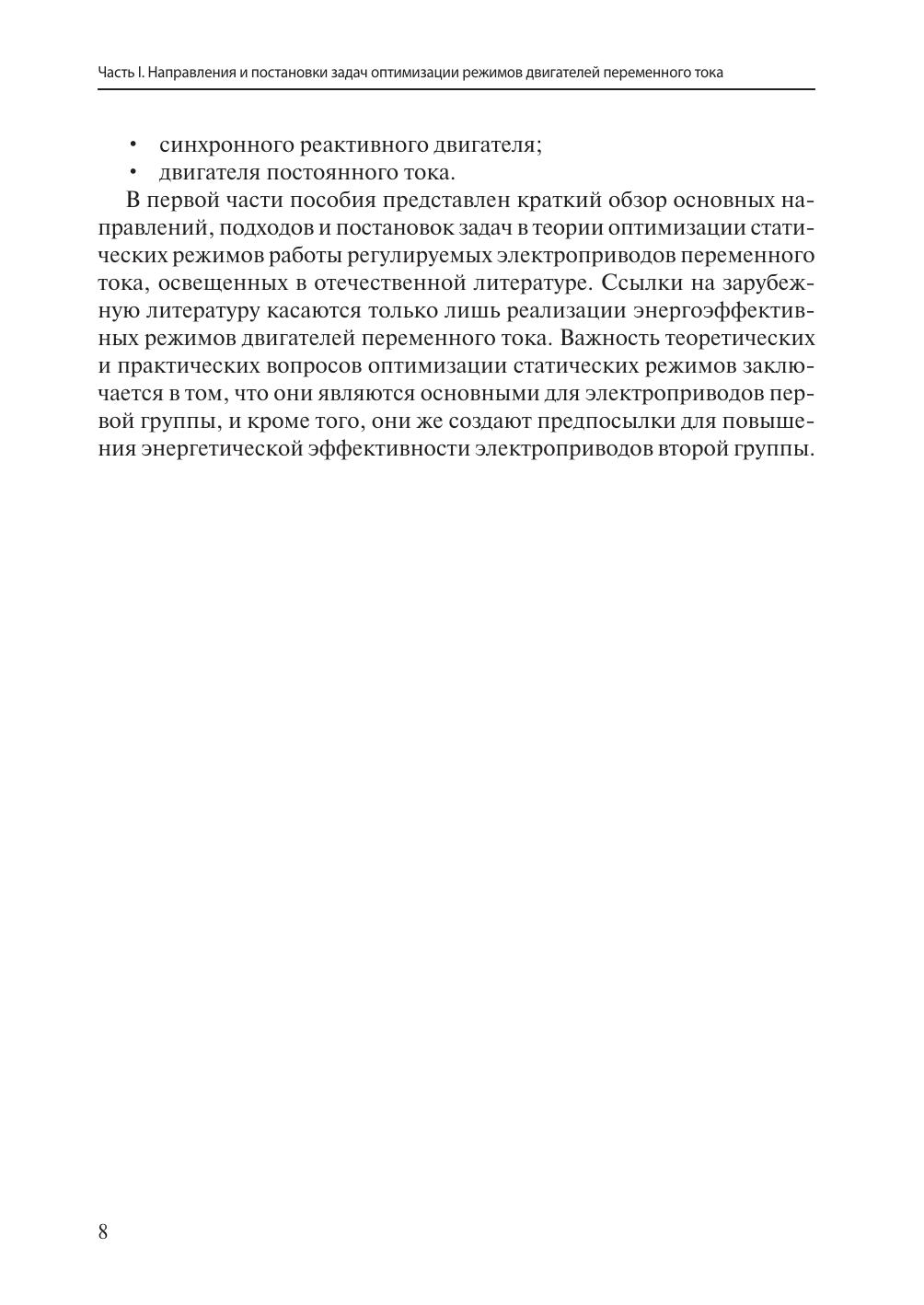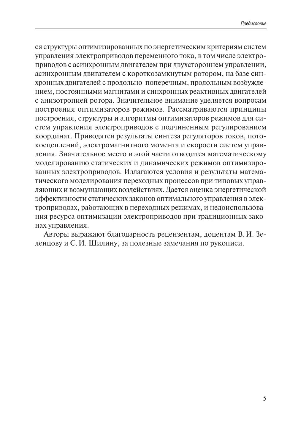 В пособии изложены вопросы построения энергоэффективных регулируемых электроприводов переменного тока. Приведены имитирующие и оптимизационные модели элементов силовой части для решения задач оптимизации режимов двигателей. Дана методика оценки энергетической эффективности режимов электроприводов. Рассмотрены принципы построения, структуры и алгоритмы оптимизаторов режимов для систем управления электроприводов с подчиненным регулированием координат. Предназначено для студентов, обучающихся по направлению подготовки 13.04.02 «Электроэнергетика и электротехника» и по магистерской программе «Электропривод и автоматизация технологических комплексов». Пособие будет полезно для аспирантов и специалистов, занимающихся разработкой и проектированием регулируемых электроприводов переменного тока.