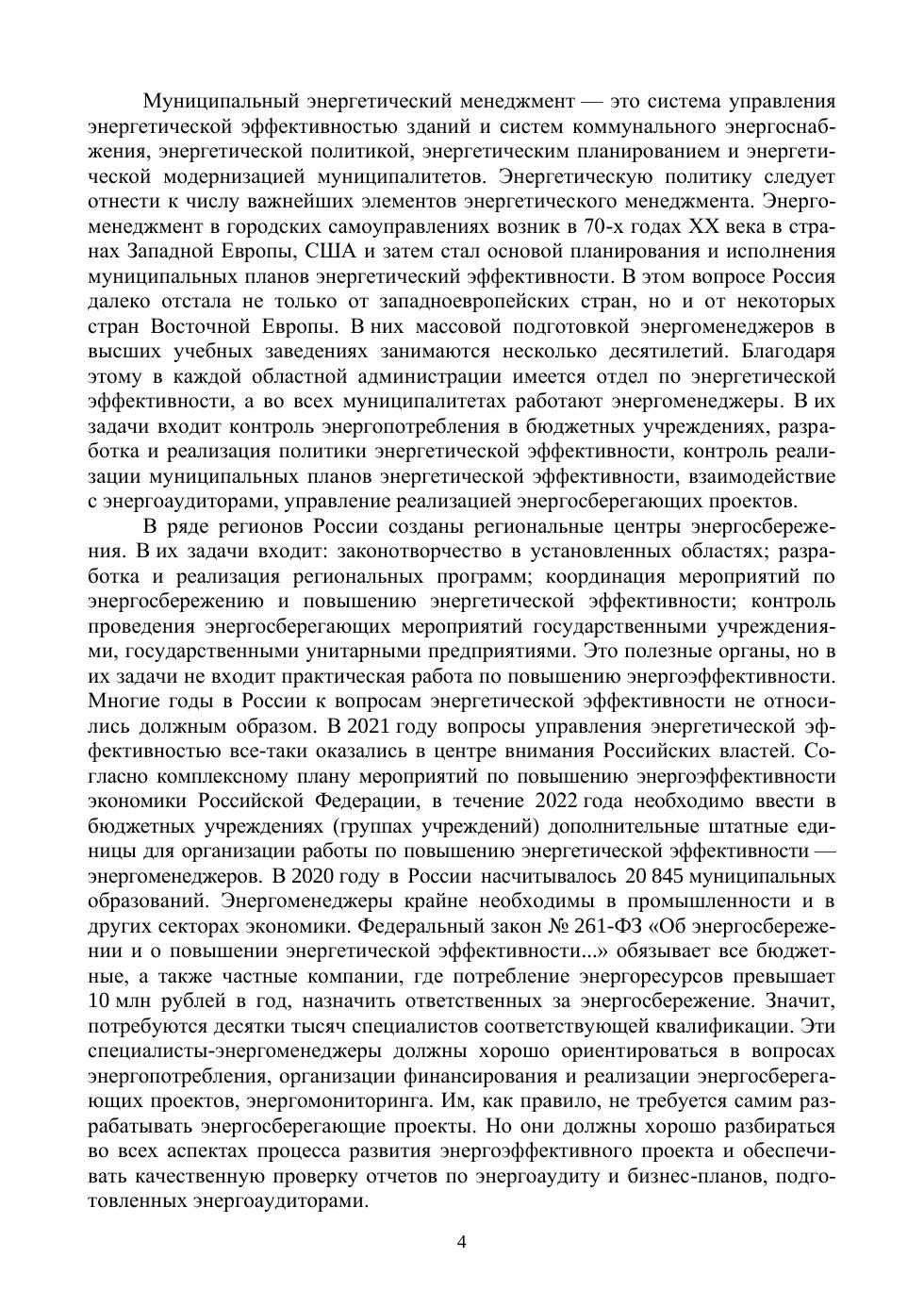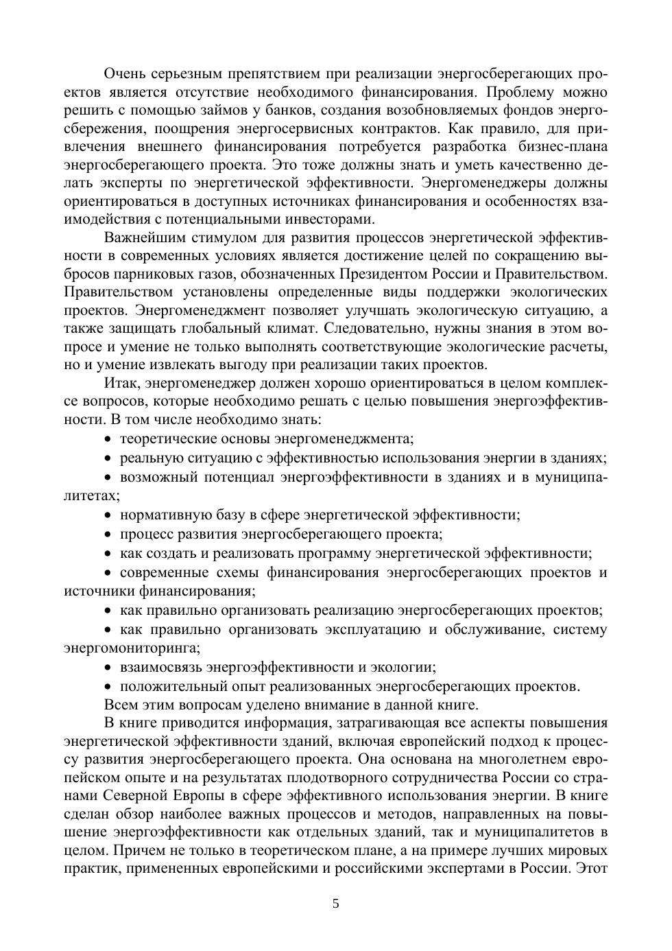 В учебном пособии освещены актуальные вопросы энергоменеджмента и исторические аспекты развития этой науки. Рассмотрены современные подходы к повышению энергоэффективности зданий и практика их применения в регионах России. Приведены сведения о муниципальных программах и механизмах финансирования энергоэффективности. Рассмотрены экологические вопросы. Приведены примеры реализованных энергосберегающих проектов. Издание предназначено для студентов энергетических и экономических направлений подготовки, изучающих вопросы энергоменеджмента и энергосбережения. Также оно может быть полезно специалистам, занимающимся вопросами энергосбережения в зданиях, преподавателям системы повышения квалификации руководителей и специалистов, ответственных за энергосбережение и повышение энергетической эффективности в муниципалитетах и учреждениях.