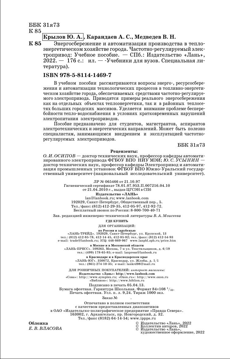 В учебном пособии рассматриваются вопросы энерго-, ресурсосбережения и автоматизации технологических процессов в топливно-энергетическом хозяйстве города, обеспечиваемых средствами частотно-регулируемого электропривода. Рассмотрен полный комплекс технологических операций на этапах производства, транспортировки и распределения тепловой энергии и подачи воды потребителям. Приводятся примеры реального энергосбережения как на отдельных объектах теплоэнергетики, так и в районных теплосетях больших городских массивов. Уделяется внимание проблеме бесперебойности тепло-водоснабжения в условиях кратковременных нарушений электропитания электроприводов. На примерах действующих теплостанций г. Москвы показано построение АСУ ТП, качественно повышающих уровень производства. Пособие предназначено для студентов, магистрантов, аспирантов электротехнических и энергетических направлений. Может быть полезно специалистам, занимающимся внедрением и эксплуатацией частотно-регулируемых электроприводов.