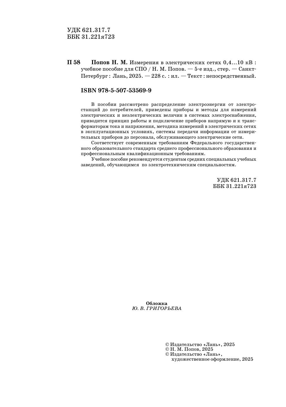 В пособии рассмотрено распределение электроэнергии от электростанций до потребителей, приведены приборы и методы для измерений электрических и неэлектрических величин в системах электроснабжения, приводится принцип работы и подключение приборов напрямую и к трансформаторам тока и напряжения, методика измерений в электрических сетях в эксплуатационных условиях, системы передачи информации от измерительных приборов до персонала, обслуживающего электрические сети. Соответствует современным требованиям Федерального государственного образовательного стандарта среднего профессионального образования и профессиональным квалификационным требованиям. Учебное пособие рекомендуется студентам средних специальных учебных заведений, обучающимся по электротехническим специальностям.
