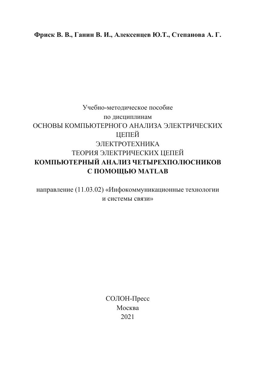 Настоящая работа является учебно-методическим пособием по анализу и моделированию переходных процессов в электрических цепях и моделированию на MATLAB электрических процессов.
