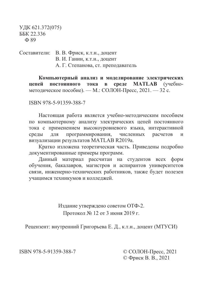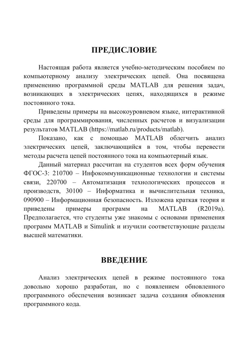 Настоящая работа является учебно-методическим пособием по компьютерному анализу электрических цепей постоянного тока с применением высокоуровневого языка, интерактивной среды для программирования, численных расчетов и визуализации результатов MATLAB R2019a.