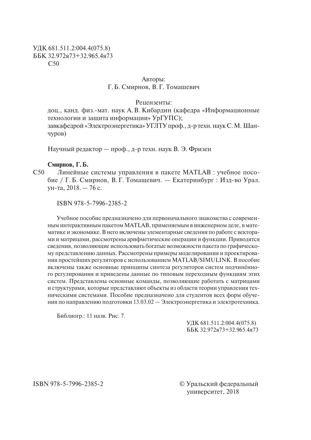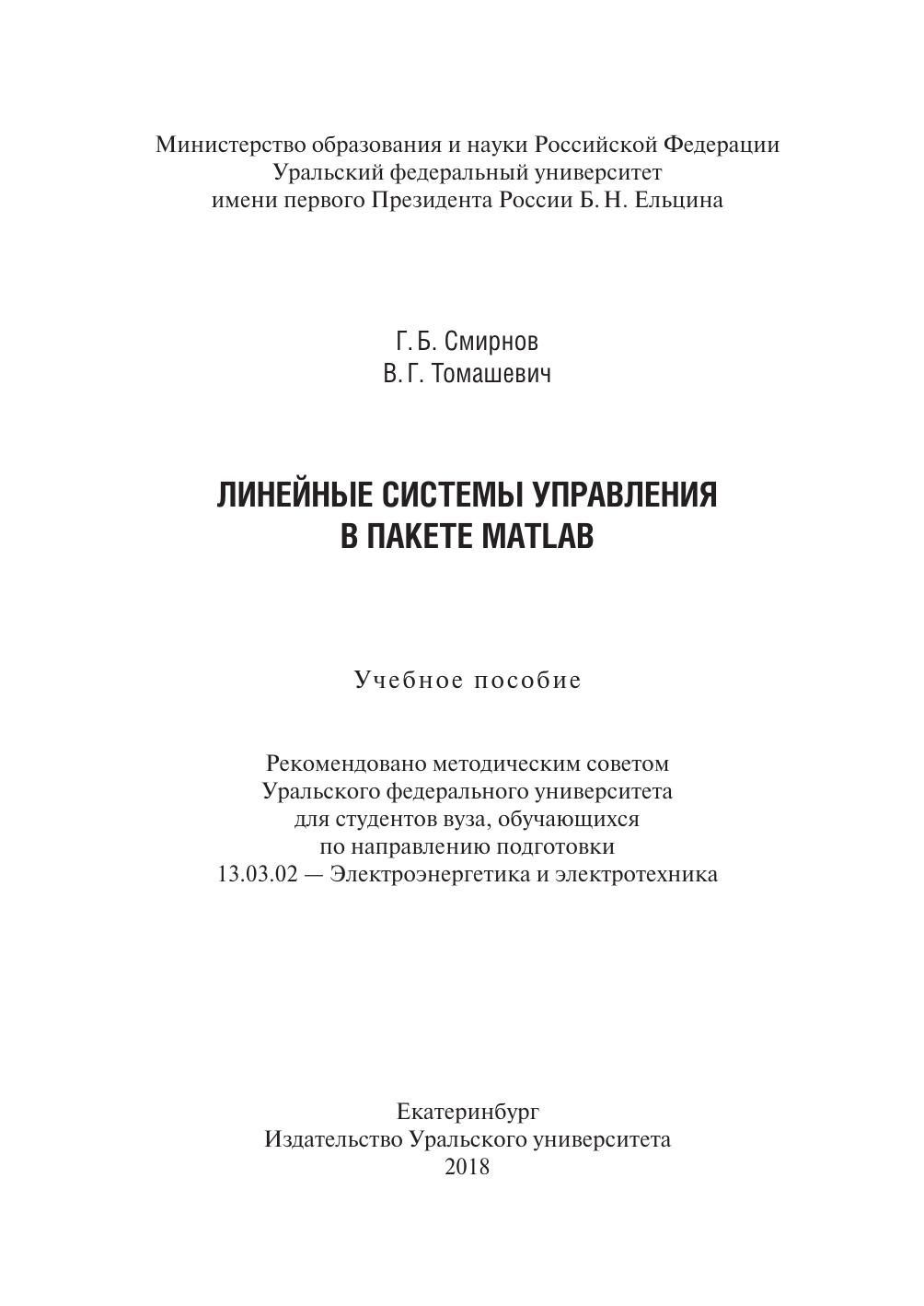 ния простейших регуляторов с использованием MATLAB/SIMULINK. В пособие включены также основные принципы синтеза регуляторов систем подчинённого регулирования и приведены данные по типовым переходным функциям этих систем. Представлены основные команды, позволяющие работать с матрицами и структурами, которые представляют объекты из области теории управления техническими системами. Пособие предназначено для студентов всех форм обучения по направлению подготовки 13.03.02 — Электроэнергетика и электротехника.