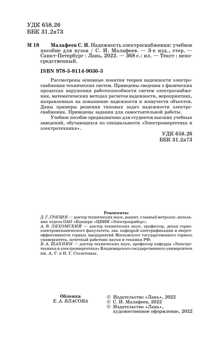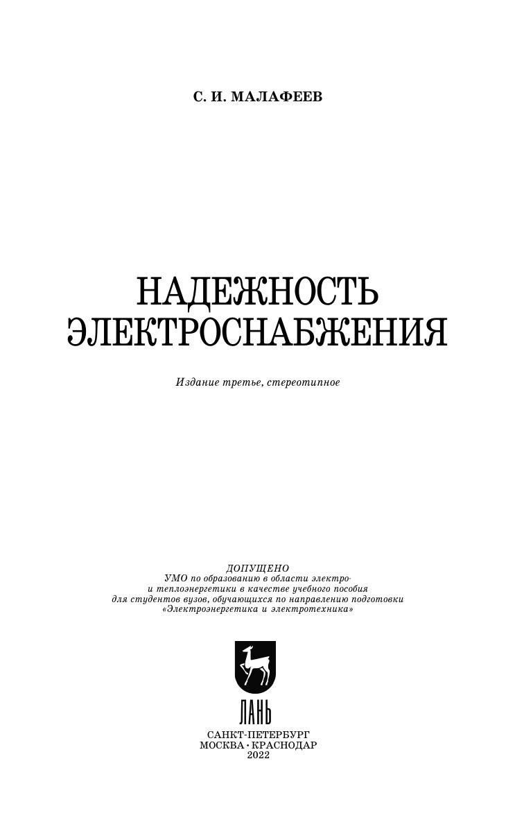 Рассмотрены основные понятия теории надежности электроснабжения технических систем. Приведены сведения о физических процессах нарушения работоспособности систем электроснабжения, математических методах расчетов надежности, мероприятиях, направленных на повышение надежности и живучести объектов. Даны примеры решения типовых задач надежности электроснабжения. Приведены задания для самостоятельной работы. Учебное пособие предназначено для студентов высших учебных заведений, обучающихся по специальности «Электроэнергетика и электротехника».