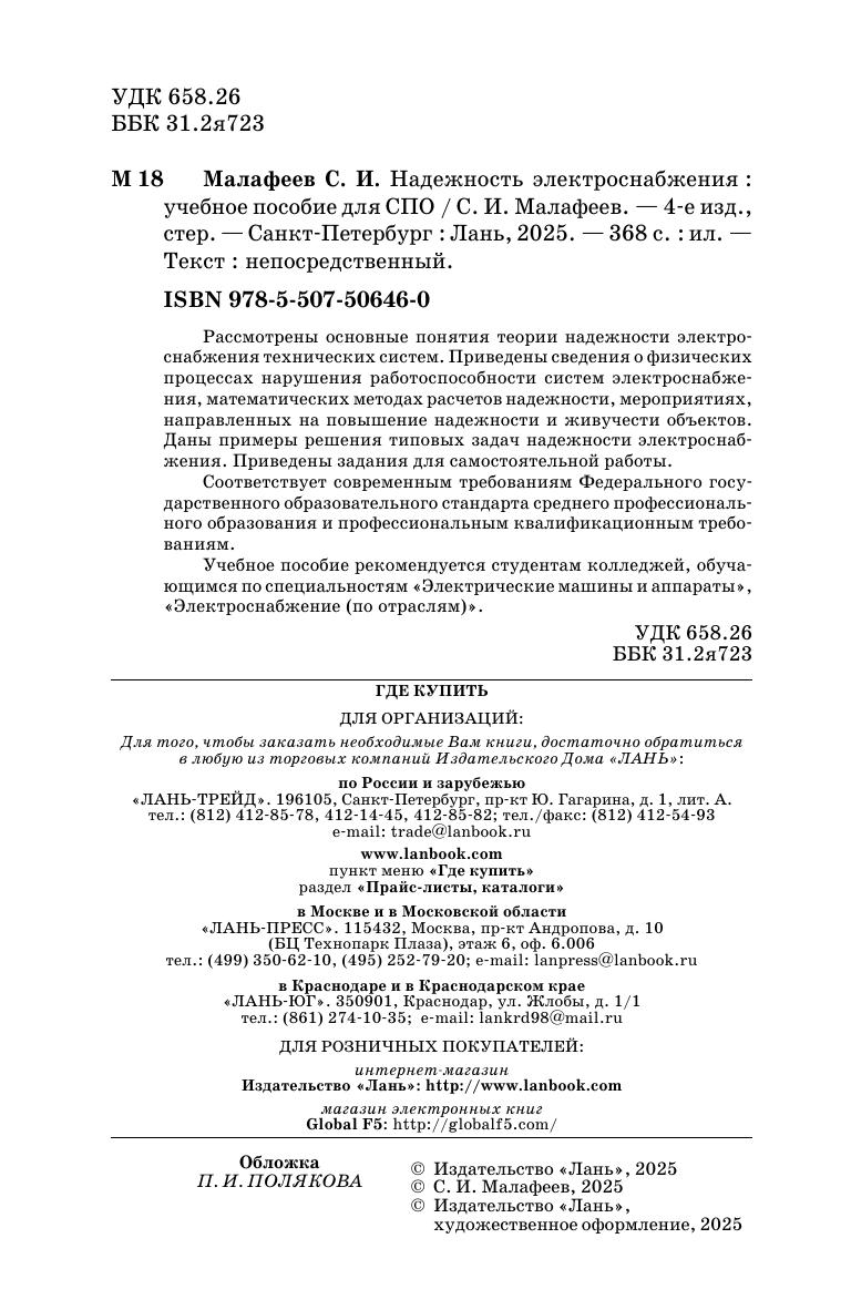 Рассмотрены основные понятия теории надежности электроснабжения технических систем. Приведены сведения о физических процессах нарушения работоспособности систем электроснабжения, математических методах расчетов надежности, мероприятиях, направленных на повышение надежности и живучести объектов. Даны примеры решения типовых задач надежности электроснабжения. Приведены задания для самостоятельной работы. Соответствует современным требованиям Федерального государственного образовательного стандарта среднего профессионального образования и профессиональным квалификационным требованиям. Учебное пособие рекомендуется студентам колледжей, обучающихся по специальностям «Электрические машины и аппараты», «Электроснабжение (по отраслям)».