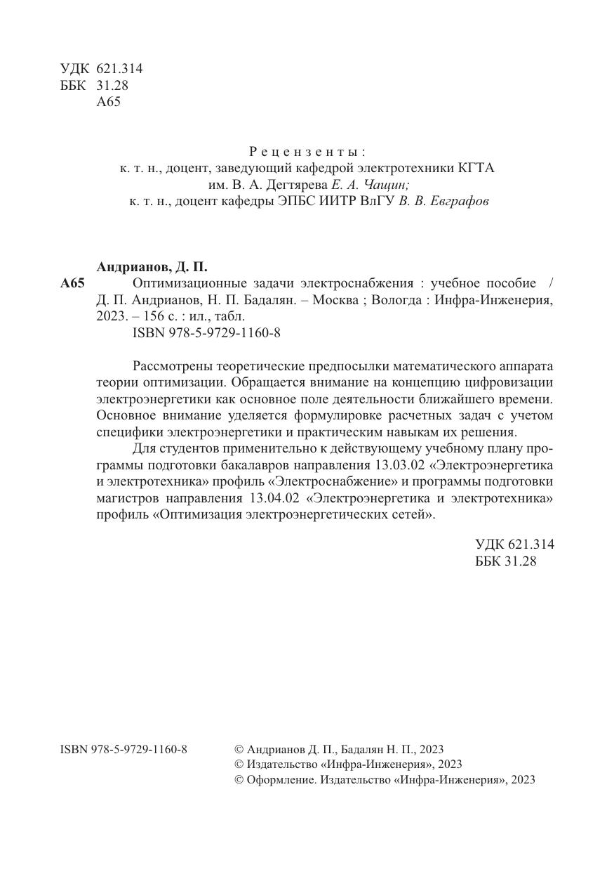 Для студентов применительно к действующему учебному плану программы подготовки бакалавров направления 13.03.02 «Электроэнергетика и электротехника» профиль «Электроснабжение» и программы подготовки магистров направления 13.04.02 «Электроэнергетика и электротехника» профиль «Оптимизация электроэнергетических сетей».