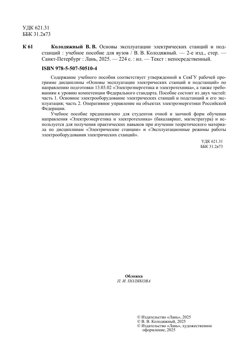 Содержание учебного пособия соответствует утвержденной в СевГУ рабочей программе дисциплины «Основы эксплуатации электрических станций и подстанций» по направлению подготовки 13.03.02 «Электроэнергетика и электротехника», а также требованиям к уровню компетенции Федерального стандарта. Пособие состоит из двух частей: часть 1. Основное электрооборудование электрических станций и под-станций и его эксплуатация, часть 2. Оперативное управление на объектах электроэнергетики Российской Федерации. Учебное пособие предназначено для студентов очной и заочной форм обучения направления «Электроэнергетика и электротехника» (бакалавриат, магистратура) и используется для получения практических навыков при изучении теоретического материала по дисциплинам «Электрические станции» и «Эксплуатационные режимы работы электрооборудования электрических станций».