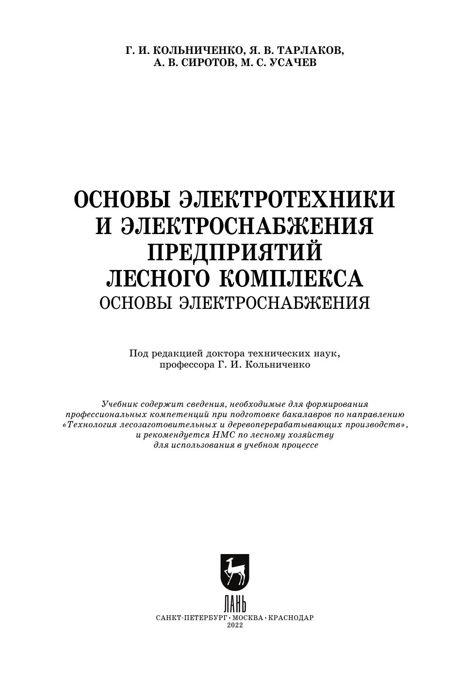 Учебник разработан на основе Федерального государственного стан-дарта высшего профессионального образования для студентов бакалавриата, обучающихся по направлению подготовки «Технологии лесозаготовитель-ных и деревоперерабатывающих производств» (профиль подготовки «Лесоинженерное дело»), и может быть полезным также специалистам неэлектро-технического профиля других отраслей, студентам и преподавателям высших и средних специальных учебных заведений.