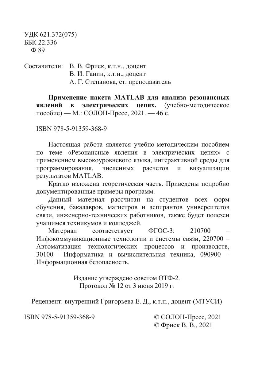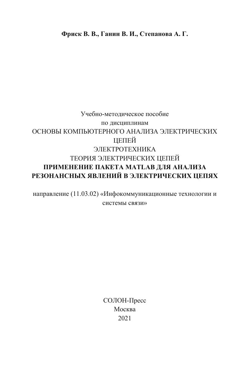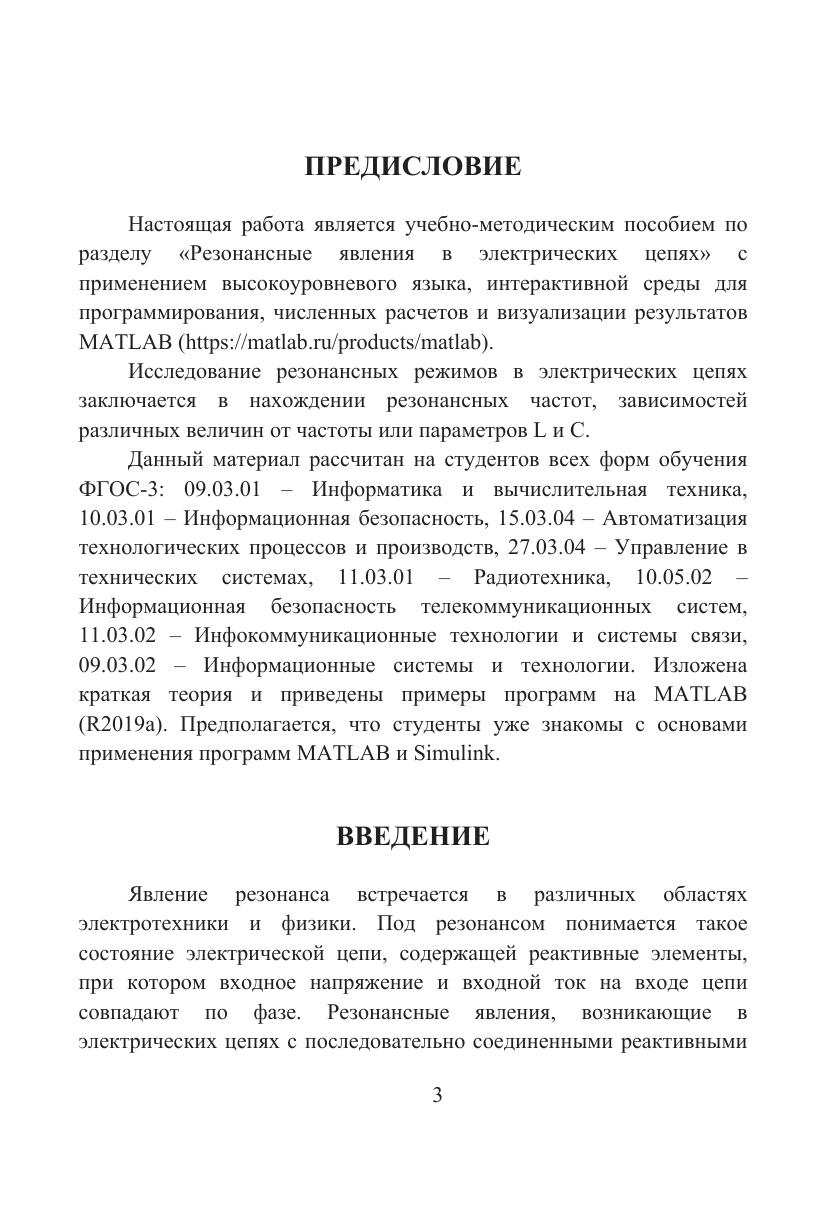 Настоящая работа является учебно-методическим пособием по теме «Резонансные явления в электрических цепях» с применением высокоуровневого языка, интерактивной среды для программирования, численных расчетов и визуализации результатов MATLAB.