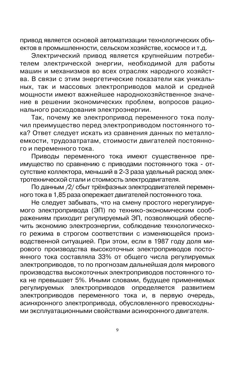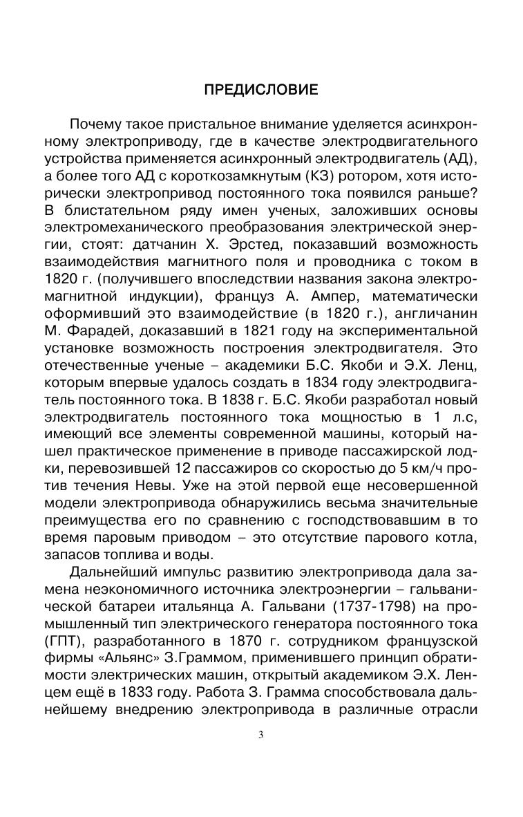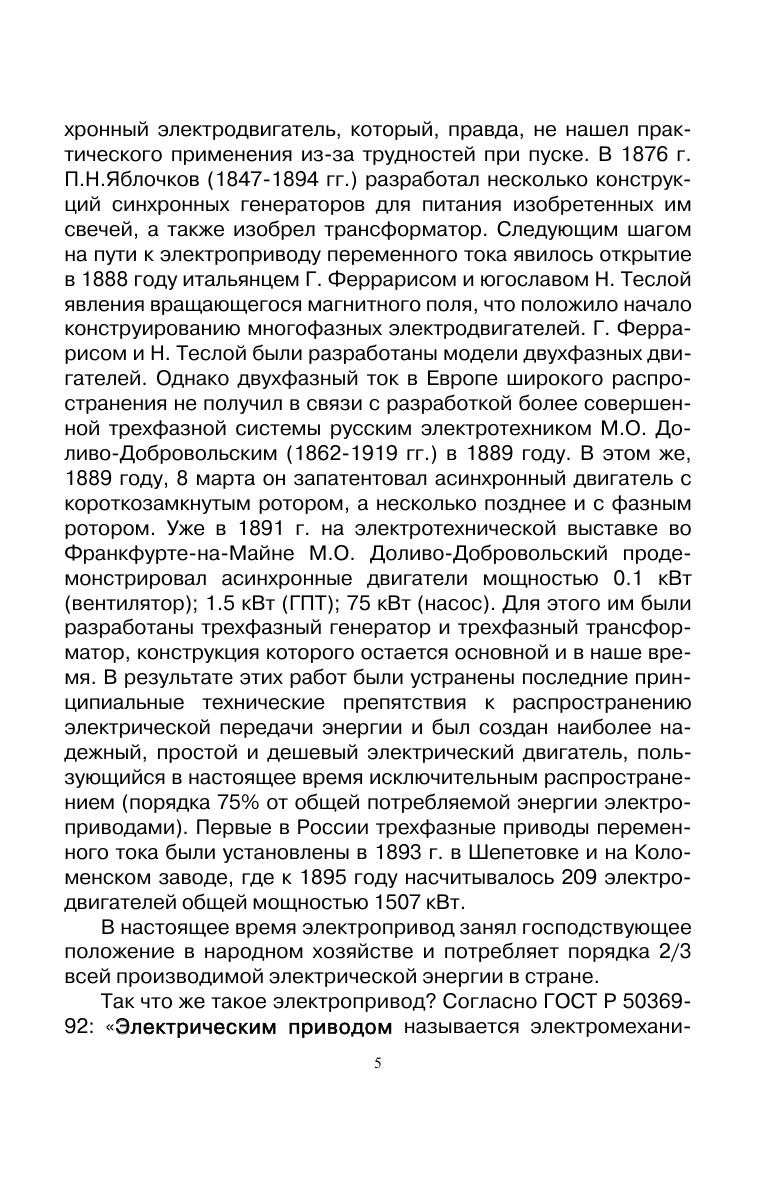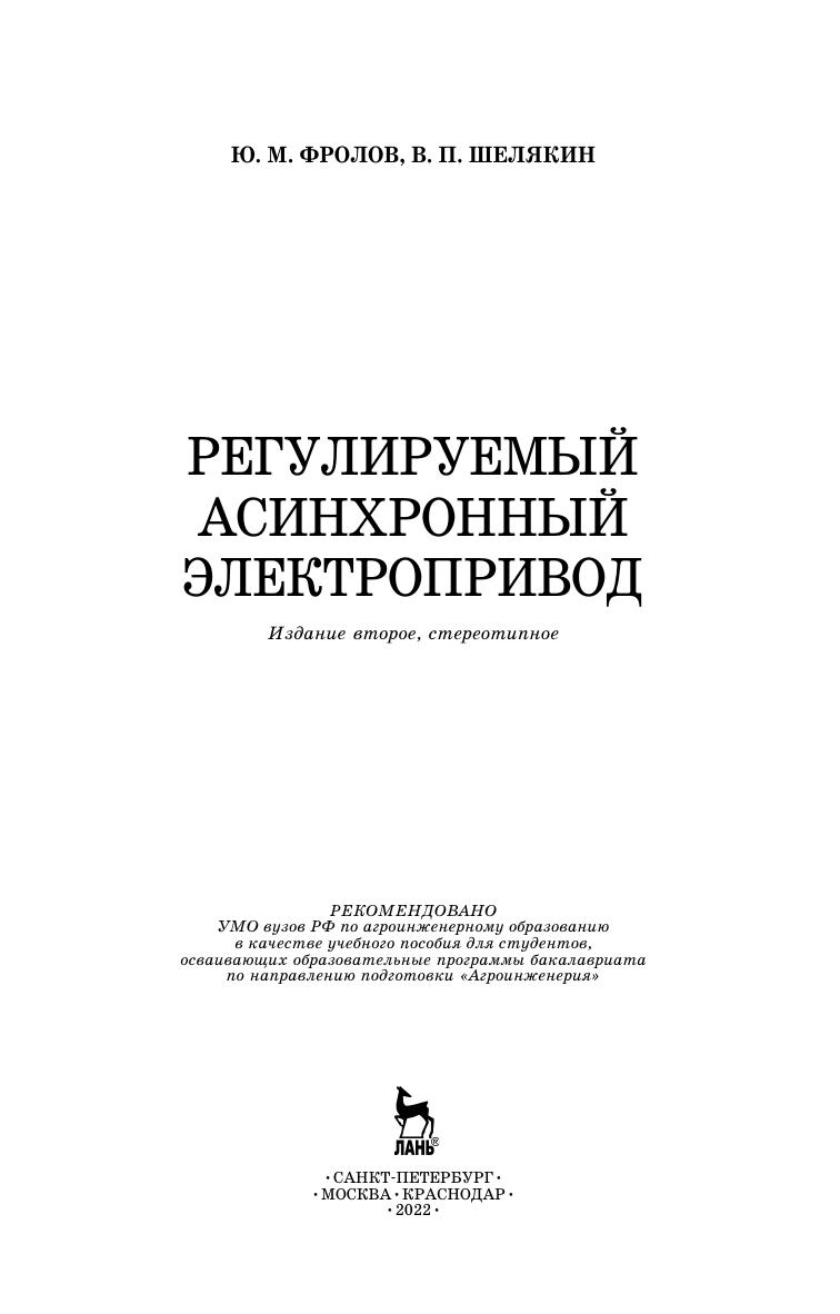 Изложены сведения об асинхронном электроприводе, включая конструктивные особенности, физические процессы в асинхронном двигателе, его механические и электромеханические характеристики в различных режимах работы. Дана общая характеристика способов регулирования асинхронного электропривода. Значительное внимание уделено законам частотного регулирования и динамическим характеристикам в режимах частотного регулирования. Отмечены особенности математического описания асинхронного двигателя на основе теории обобщенной электрической машины и методы её моделирования с учетом требований векторного управления. В пособии нашли своё отражение перспективные направления в развитии асинхронного электропривода, в частности, прямое управление моментом двигателя, адаптивное управление и системы управления на базе нечеткой логики. Все разделы изложения теоретического материала полно подкреплены приведенными примерами. Учебное пособие предназначено для студентов, обучающихся по направлениям подготовки бакалавров «Агроинженерия», «Электроэнергетика и электротехника», также будет полезно аспирантам и магистрам других смежных специальностей, инженерно-техническим работникам и всем, занимающимся на производстве с электрическим приводом.