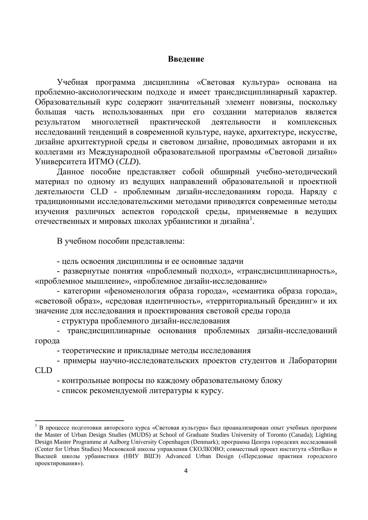 Учебное пособие «Световая культура города. Часть I. Проблемный подход» открывает серию учебно-методических материалов, посвященных изучению социокультурного аспекта проектирования световой среды города. Настоящее пособие является результатом научно-экспериментальной и проектной деятельности Международной образовательной программы «Световой дизайн» Университета ИТМО. В пособии представлены теоретический материал, раскрывающий содержание дисциплины, практические примеры, а также теоретические и прикладные методы, применяемые в проблемных дизайн-исследованиях. Пособие содержит контрольные вопросы, примеры исследовательских проектов, список рекомендуемой литературы.