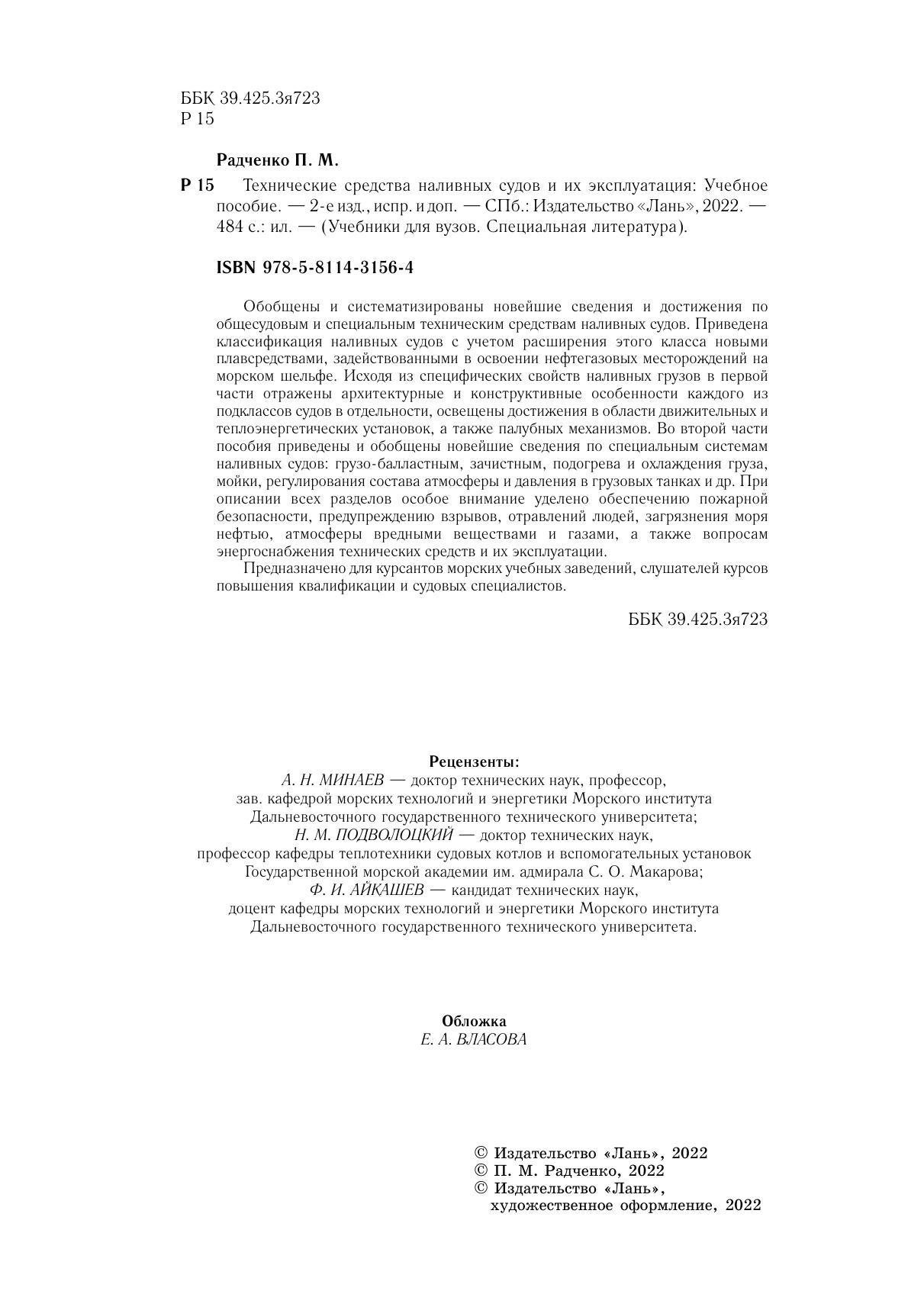Обобщены и систематизированы новейшие сведения и достижения по общесудовым и специальным техническим средствам наливных судов. Приведена классификация наливных судов с учетом расширения этого класса новыми плавсредствами, задействованными в освоении нефтегазовых месторождений на морском шельфе. Исходя из специфических свойств наливных грузов в первой части отражены архитектурные и конструктивные особенности каждого из подклассов судов в отдельности, освещены достижения в области движительных и теплоэнергетических установок, а также палубных механизмов. Во второй части пособия приведены и обобщены новейшие сведения по специальным системам наливных судов: грузо-балластным, зачистным, подогрева и охлаждения груза, мойки, регулирования состава атмосферы и давления в грузовых танках и др. При описании всех разделов особое внимание уделено обеспечению пожарной безопасности, предупреждению взрывов и отравлений людей, предупреждению загрязнения моря нефтью и атмосферы вредными веществами и газами, а также вопросам энергоснабжения технических средств и их эксплуатации. Предназначено для курсантов морских учебных заведений, слушателей курсов повышения квалификации и судовых специалистов.