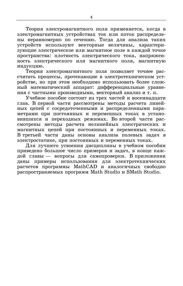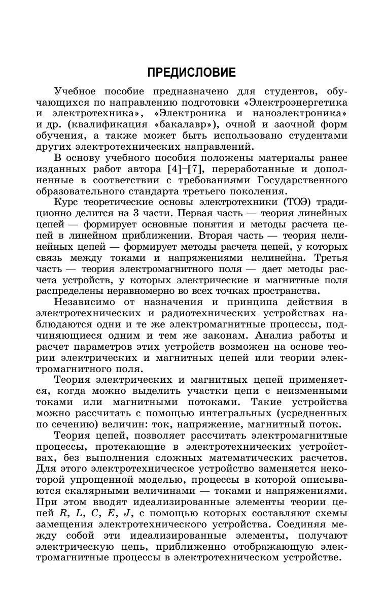 Рассматриваются общие методы расчета линейных и нелинейных цепей с сосредоточенными и распределенными параметрами при постоянных и переменных токах в установившихся и переходных режимах, а также методы расчета полевых задач в электростатике, при постоянных и переменных токах. Учебное пособие предназначено для студентов, обучающихся по направлению подготовки «Электроэнергетика и электротехника», «Электроника и наноэлектроника» и др. (квалификация «бакалавр»), очной и заочной форм обучения, а также может быть использовано студентами других электротехнических направлений.