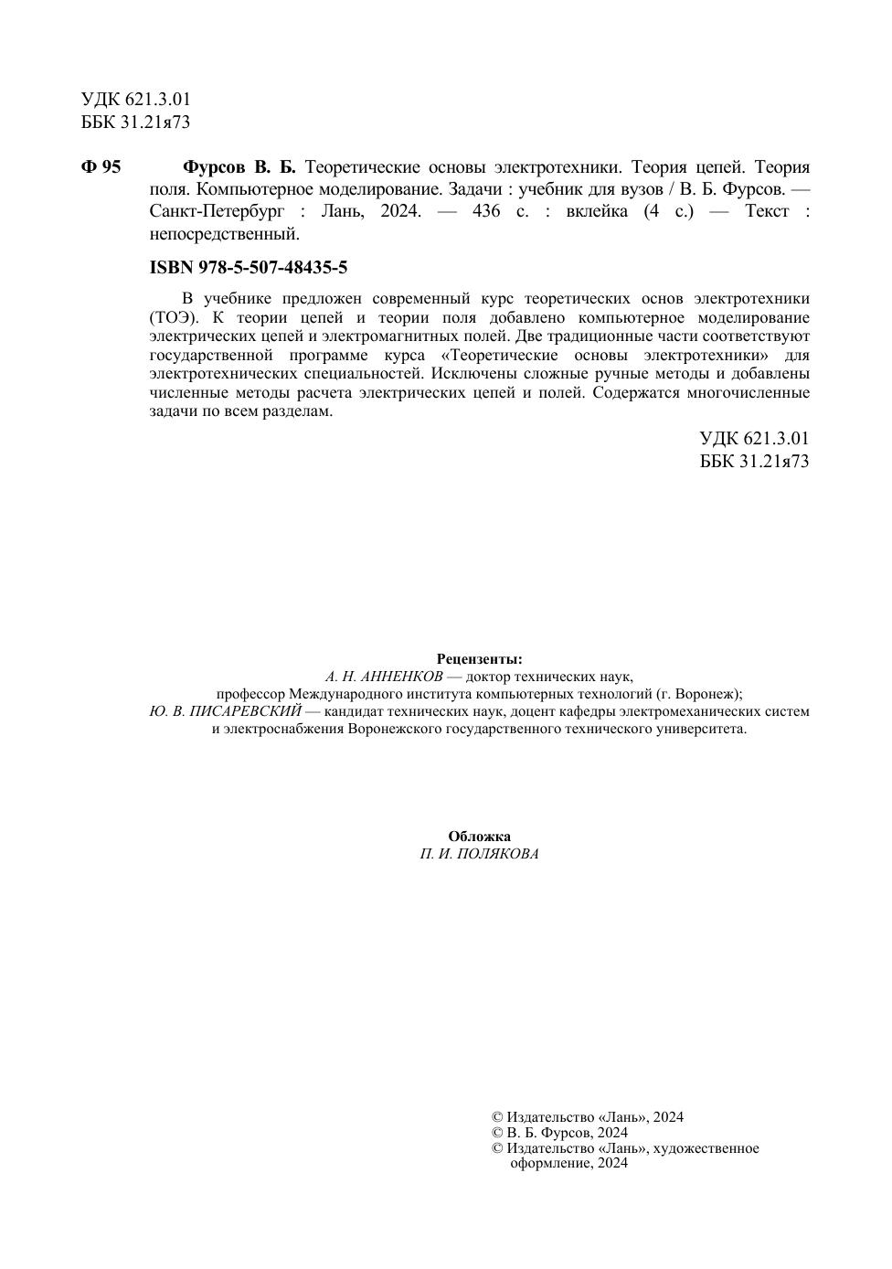 В учебнике предложен современный курс теоретических основ электротехники (ТОЭ). К теории цепей и теории поля добавлено компьютерное моделирование электрических цепей и электромагнитных полей. Две традиционные части соответствуют государственной программе курса «Теоретические основы электротехники» для электротехнических специальностей. Исключены сложные ручные методы и добавлены численные методы расчета электрических цепей и полей. Содержатся многочисленные задачи по всем разделам.