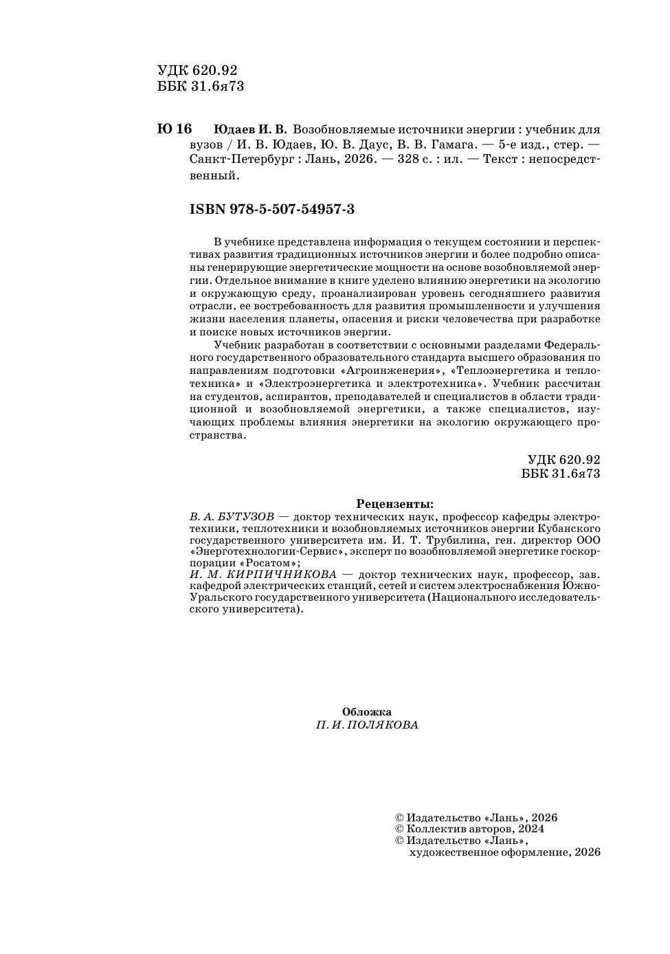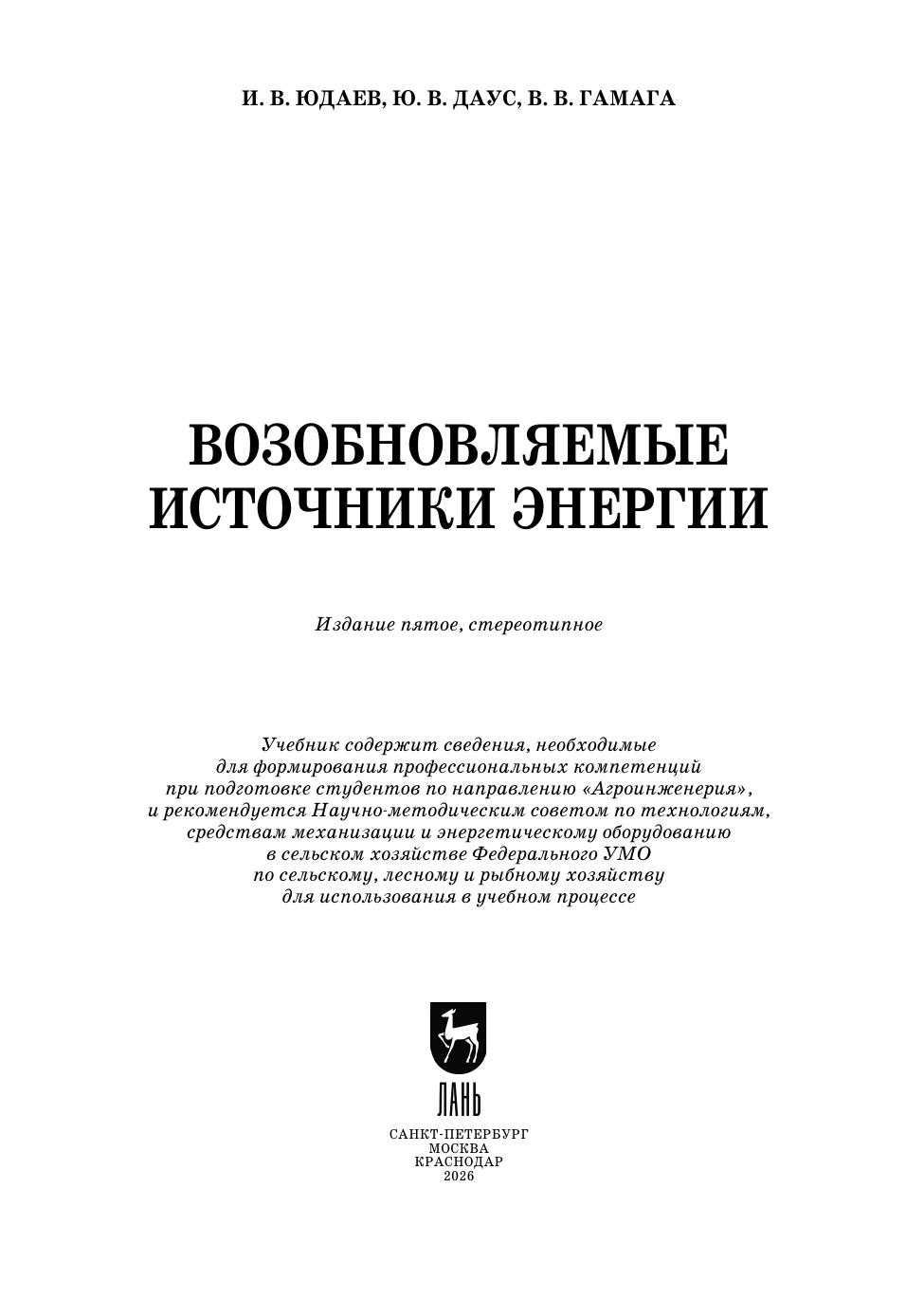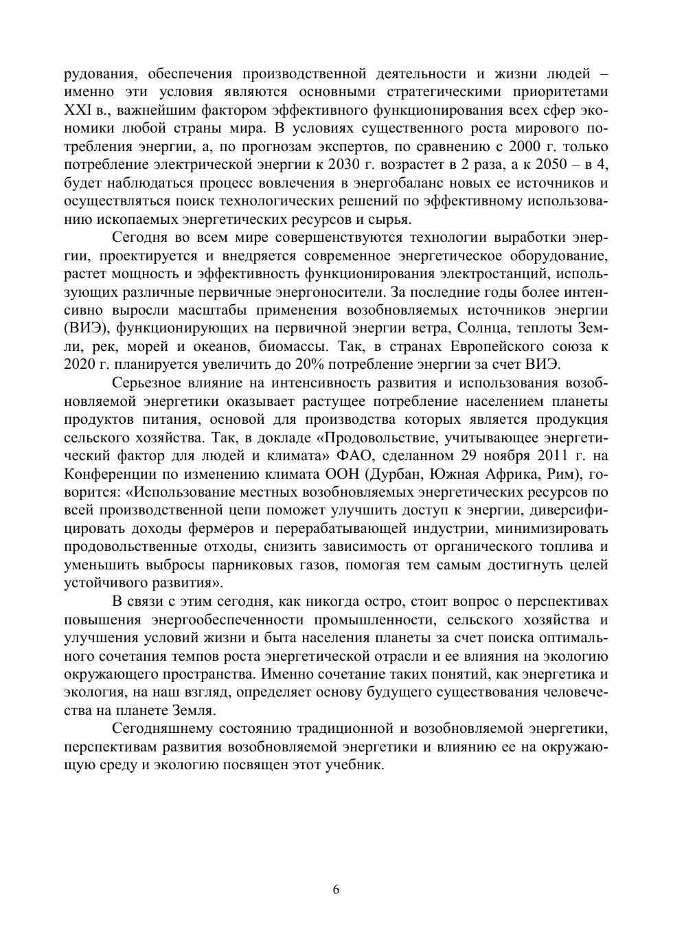 В учебнике представлена информация о текущем состоянии и перспективах развития традиционных источников энергии и более подробно описаны генерирующие энергетические мощности на основе возобновляемой энергии. Отдельное внимание в книге уделено влиянию энергетики на экологию и окружающую среду, проанализирован уровень сегодняшнего развития отрасли, ее востребованность для развития промышленности и улучшения жизни населения планеты, опасения и риски человечества при разработке и поиске новых источников энергии. Учебник разработан в соответствии с основными разделами Федерального государственного образовательного стандарта высшего образования по направлениям подготовки «Агроинженерия», «Теплоэнергетика и теплотехника» и «Электроэнергетика и электротехника». Учебник рассчитан на студентов, аспирантов, преподавателей и специалистов в области традиционной и возобновляемой энергетики, а также специалистов, изучающих проблемы влияния энергетики на экологию окружающего пространства.