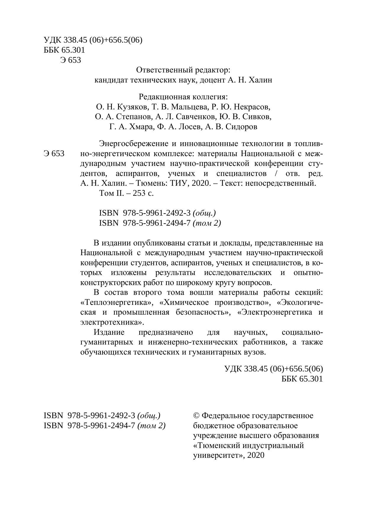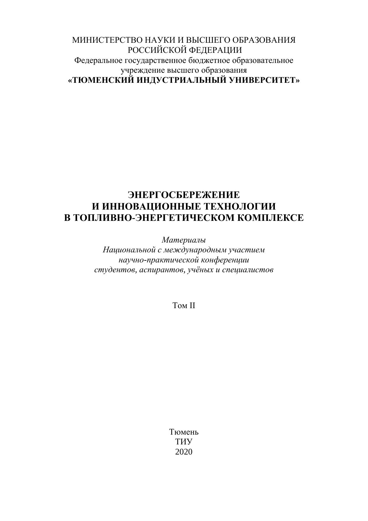 Энергосбережение и инновационные технологии в топливно-энергетическом комплексе: материалы Национальной с международным участием научно-практической конференции студентов, аспирантов, ученых и специалистов. Том II