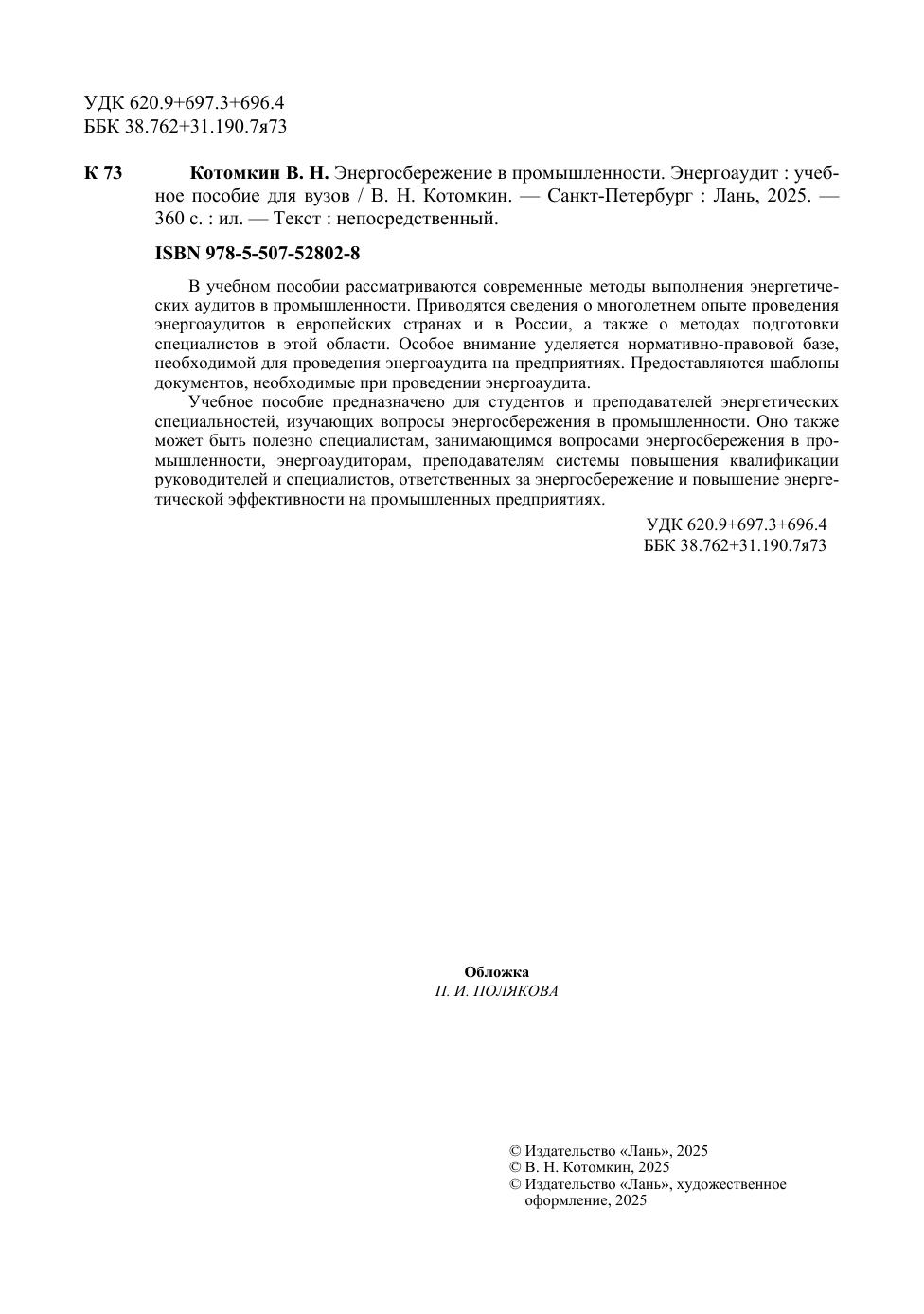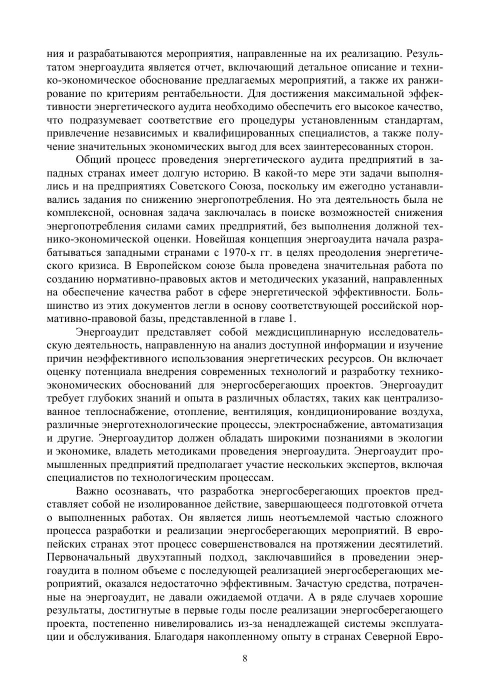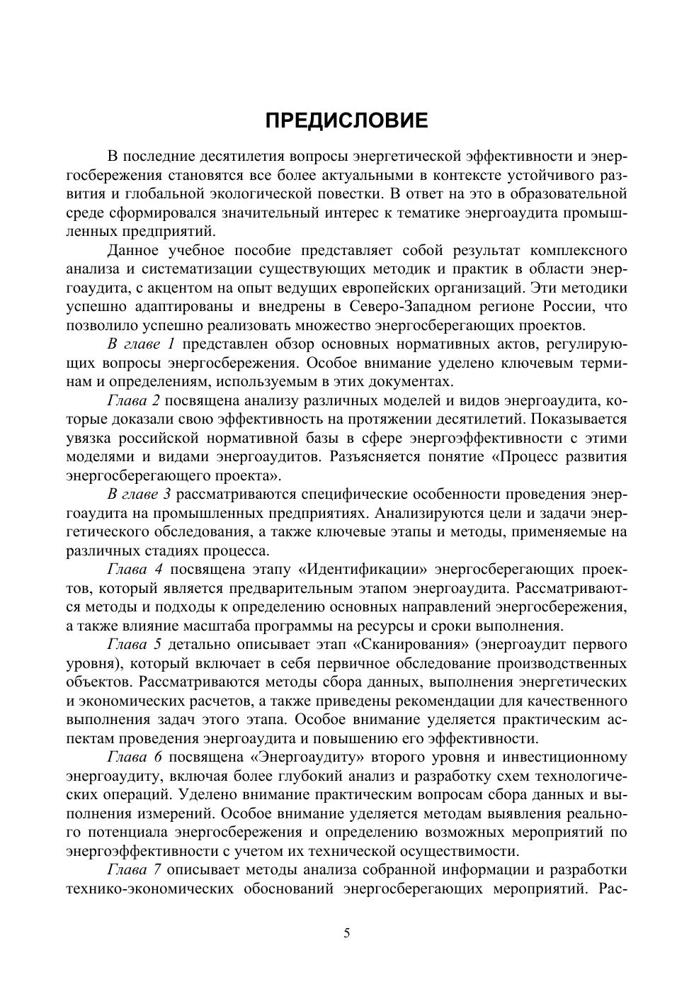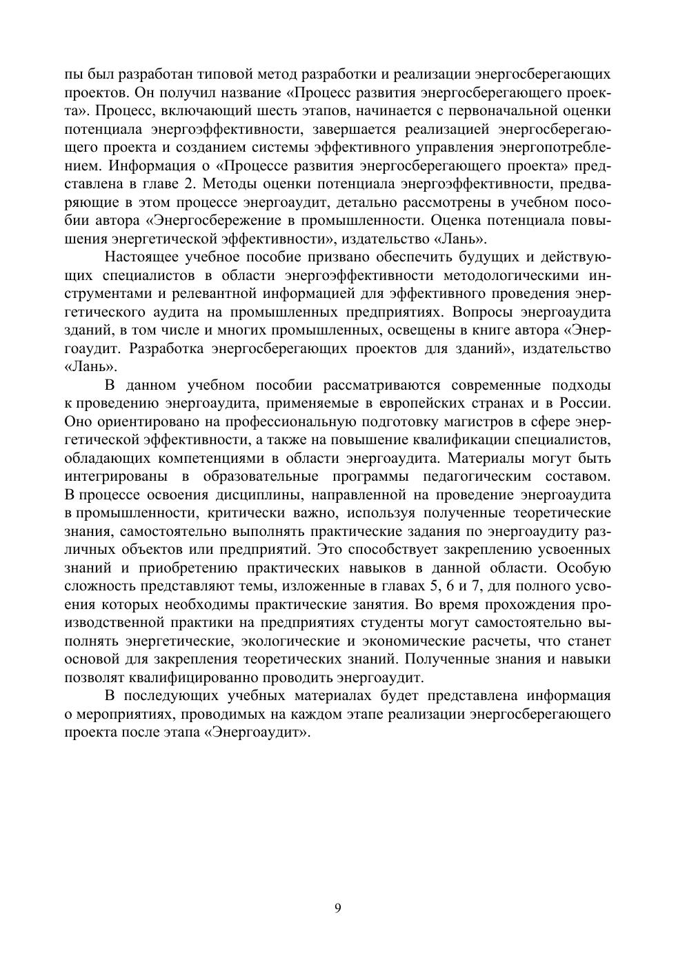 В учебном пособии рассматриваются современные методы выполнения энергетических аудитов в промышленности. Приводятся сведения о многолетнем опыте проведения энергоаудитов в европейских странах и в России, а также о методах подготовки специалистов в этой области. Особое внимание уделяется нормативно-правовой базе, необходимой для проведения энергоаудита на предприятиях. Предоставляются шаблоны документов, необходимые при проведении энергоаудита. Учебное пособие предназначено для студентов и преподавателей энергетических специальностей, изучающих вопросы энергосбережения в промышленности. Оно также может быть полезно специалистам, занимающимся вопросами энергосбережения в промышленности, энергоаудиторам, преподавателям системы повышения квалификации руководителей и специалистов, ответственных за энергосбережение и повышение энергетической эффективности на промышленных предприятиях.