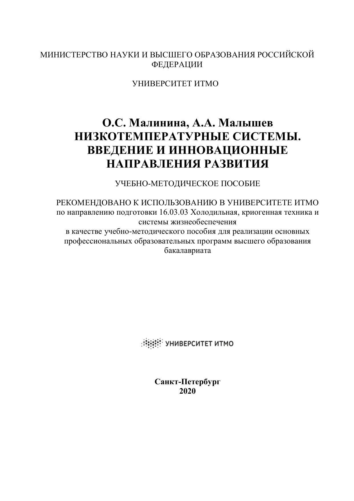 Низкотемпературные системы. Введение и инновационные направления развития
