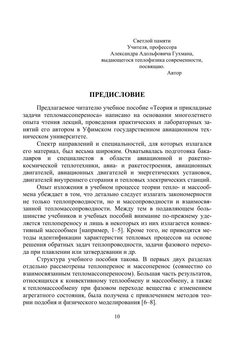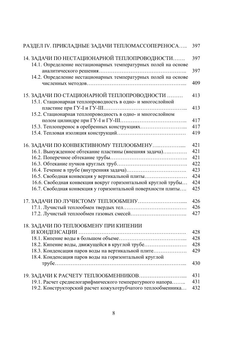 Изложено состояние основных проблем тепломассопереноса, имеющего место во многих современных технических устройствах и технологических процессах большинства отраслей промышленности. В первом разделе освещены основные положения теории теплопроводности, конвективного и лучистого теплообмена, а также специальные вопросы теплопереноса. Во втором разделе рассмотрены закономерности массопроводности и взаимосвязанной тепломассопроводности, конвективного массообмена и тепломассообмена при изменении агрегатного состояния вещества. В третьем разделе вопросы конвективного тепломассообмена и связанные с ними вопросы гидродинамики рассмотрены с привлечением методов теории пограничного слоя, что позволило увязать интегральные характеристики изучаемых процессов с их детальным представлением. В четвертом разделе приведены задачи тепломассопереноса, решение которых направлено на закрепление теоретического материала и имеет прикладное значение. Предназначено для студентов, обучающихся по направлению подготовки высшего образования «Авиационная и ракетно-космическая техника», и может быть полезно при подготовке других направлений.
