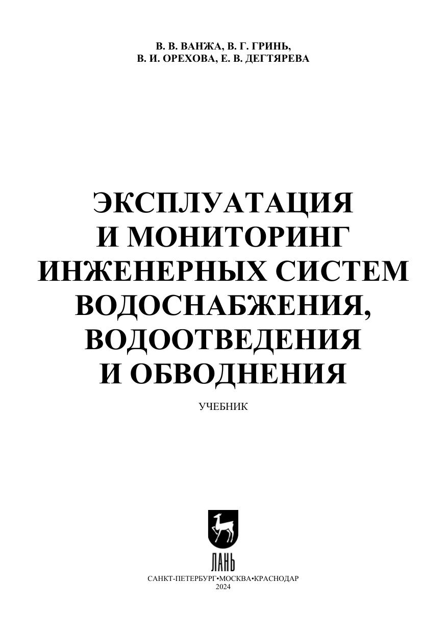 В учебнике рассмотрены основные вопросы эксплуатации и мониторинга систем водоснабжения и водоотведения, условия их работы, факторы, обусловливающие надежность и долговечность сооружений. Предназначено для преподавателей, аспирантов, бакалавров, магистров, обучающихся по инженерным специальностям высшего и среднего профессионального образования, для обучающихся по направлению подготовки «Природообустройство и водопользование».