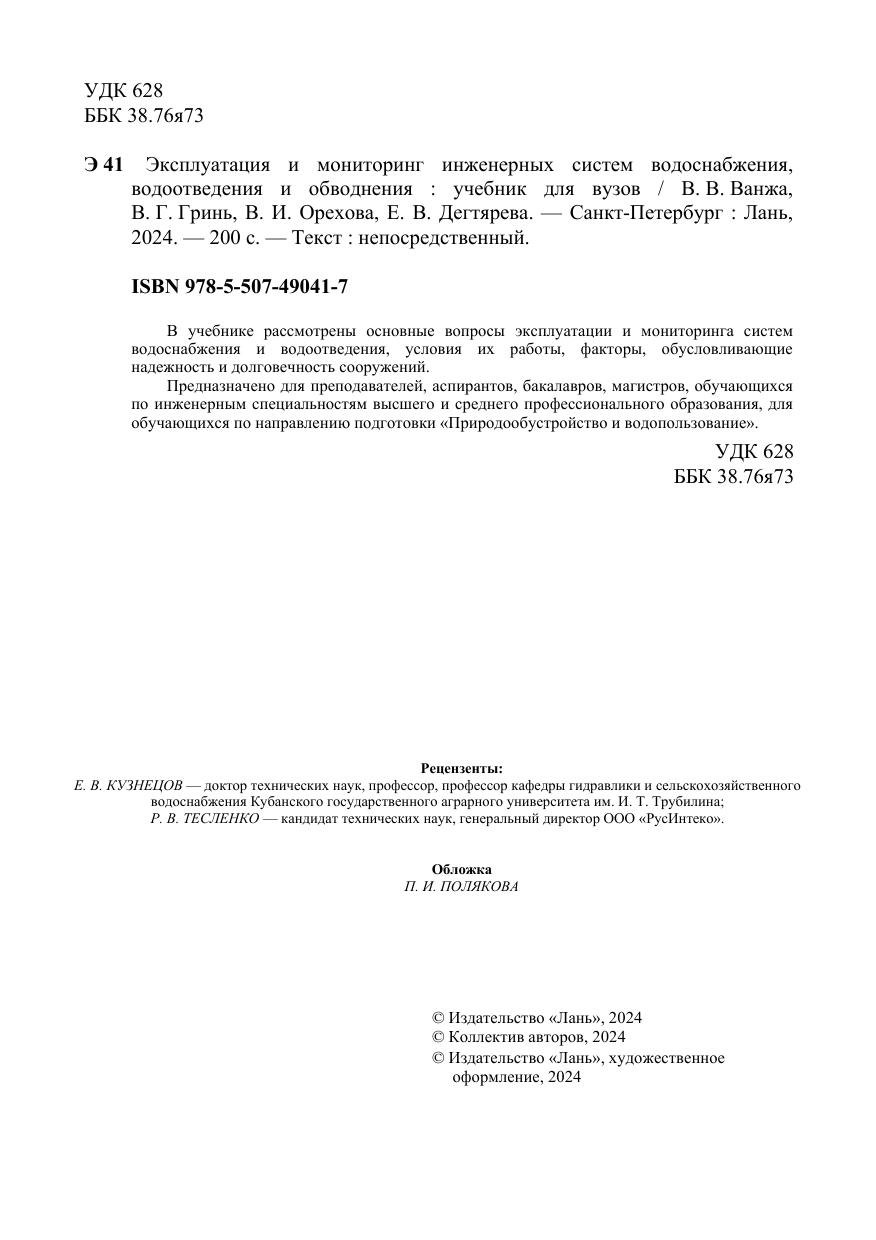 Эксплуатация и мониторинг инженерных систем водоснабжения, водоотведения и обводнения