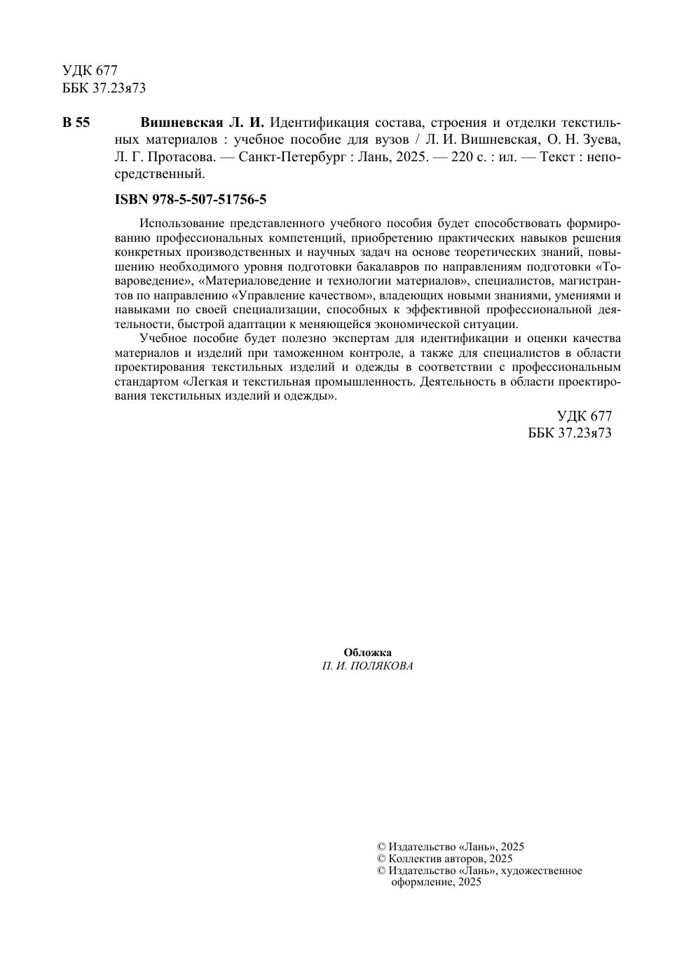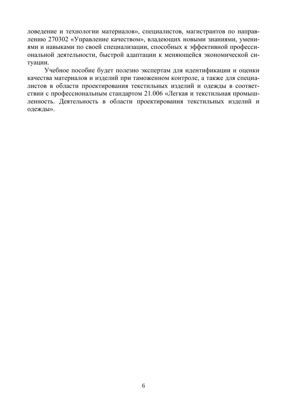 Использование представленного учебного пособия будет способствовать формированию профессиональных компетенций, приобретению практических навыков решения конкретных производственных и научных задач на основе теоретических знаний, повышению необходимого уровня подготовки бакалавров по направлениям подготовки «Товароведение», «Материаловедение и технологии материалов», специалистов, магистрантов по направлению «Управление качеством», владеющих новыми знаниями, умениями и навыками по своей специализации, способных к эффективной профессиональной деятельности, быстрой адаптации к меняющейся экономической ситуации. Учебное пособие будет полезно экспертам для идентификации и оценки качества материалов и изделий при таможенном контроле, а также для специалистов в области проектирования текстильных изделий и одежды в соответствии с профессиональным стандартом «Легкая и текстильная промышленность. Деятельность в области проектирования текстильных изделий и одежды».