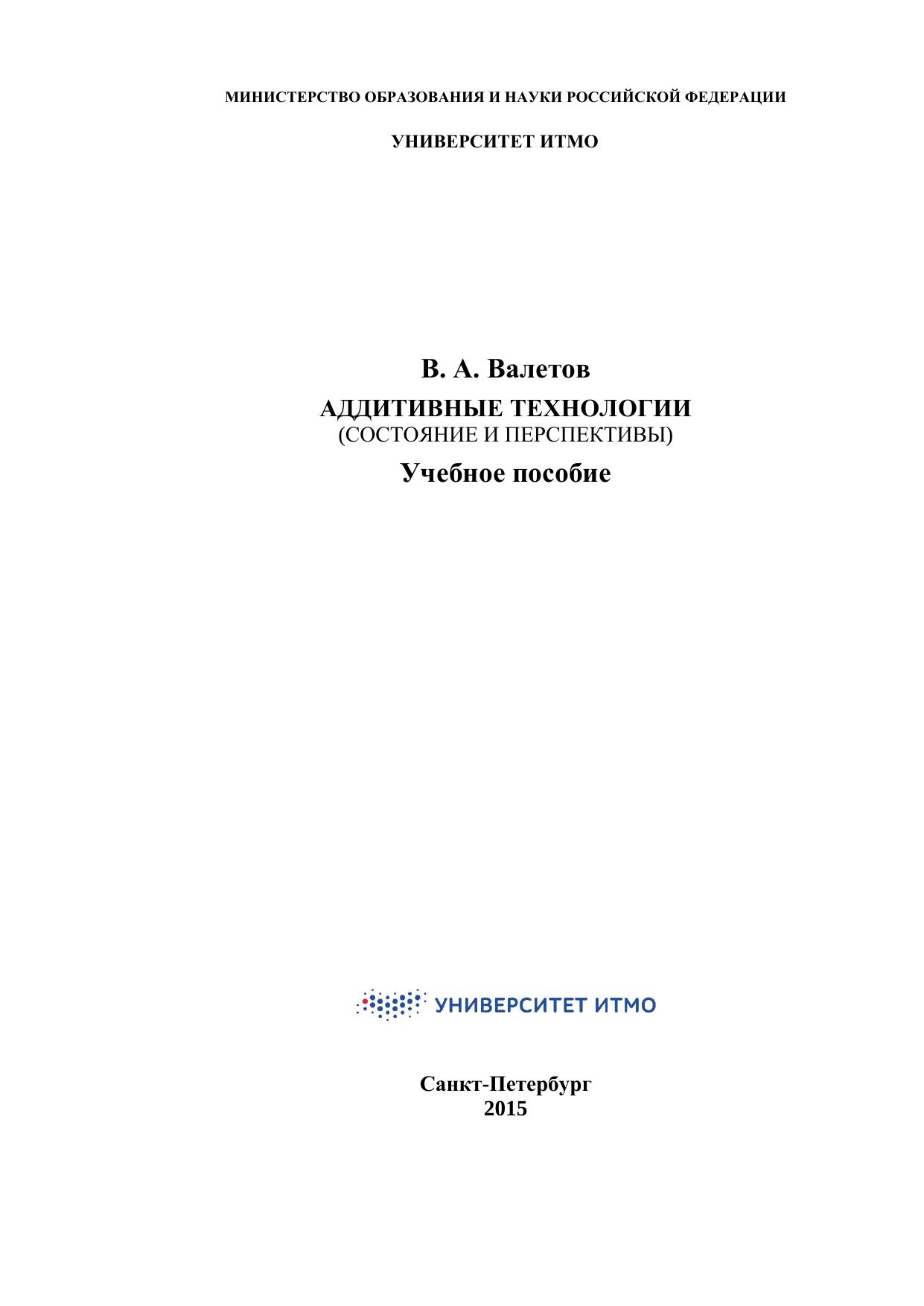 Аддитивные технологии (состояние и перспективы). Учебное пособие