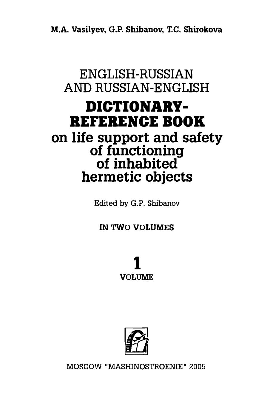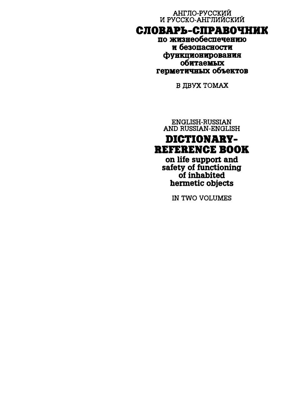 Англо-русский и русско-английский словарь-справочник по жизнеобеспечению и безопасности функционирования обитаемых герметичных объектов: В двух томах. Том 1