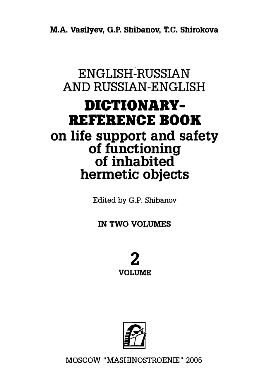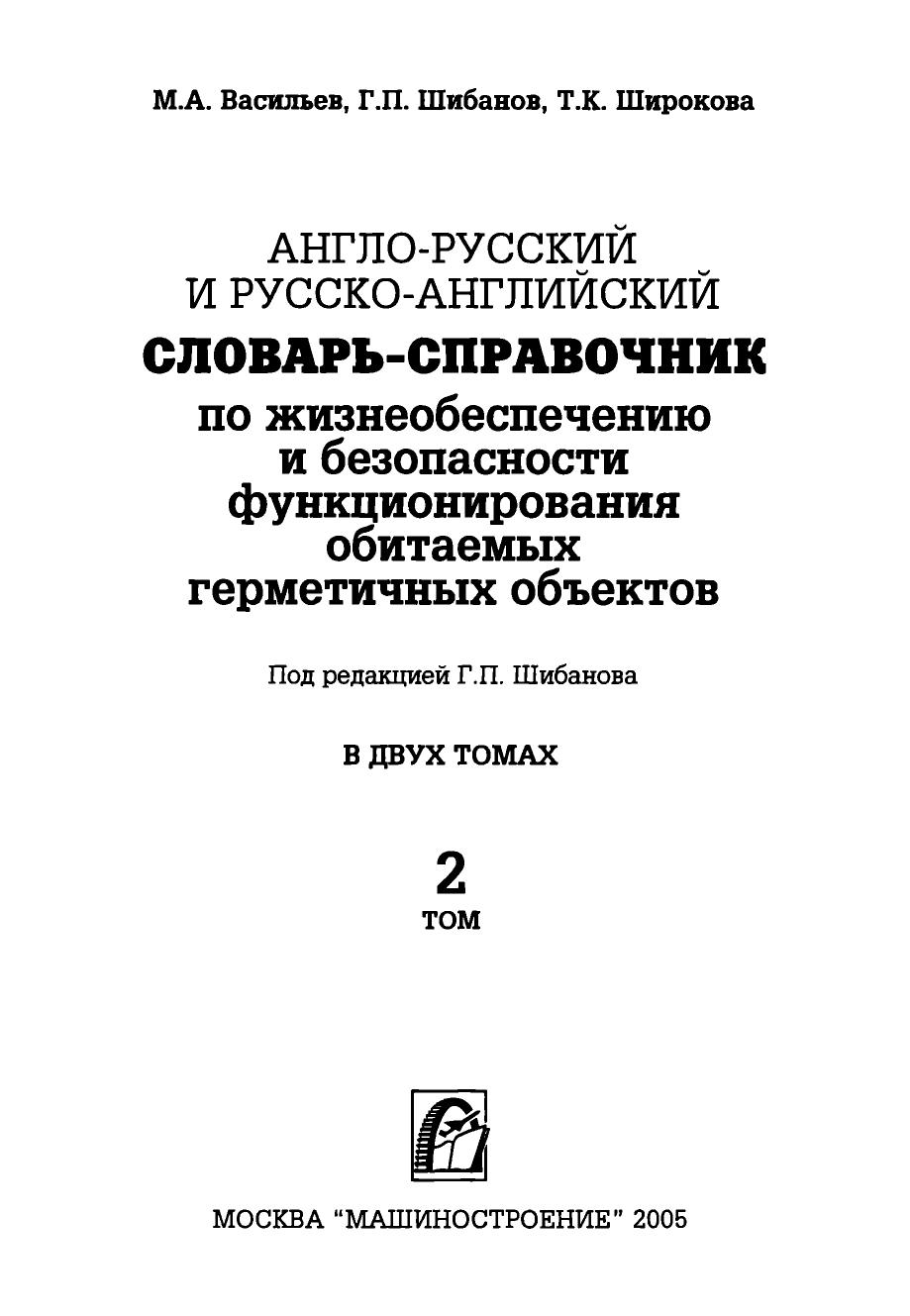 Англо-русский и русско-английский словарь-справочник по жизнеобеспечению и безопасности функционирования обитаемых герметичных объектов: В двух томах. Том 2