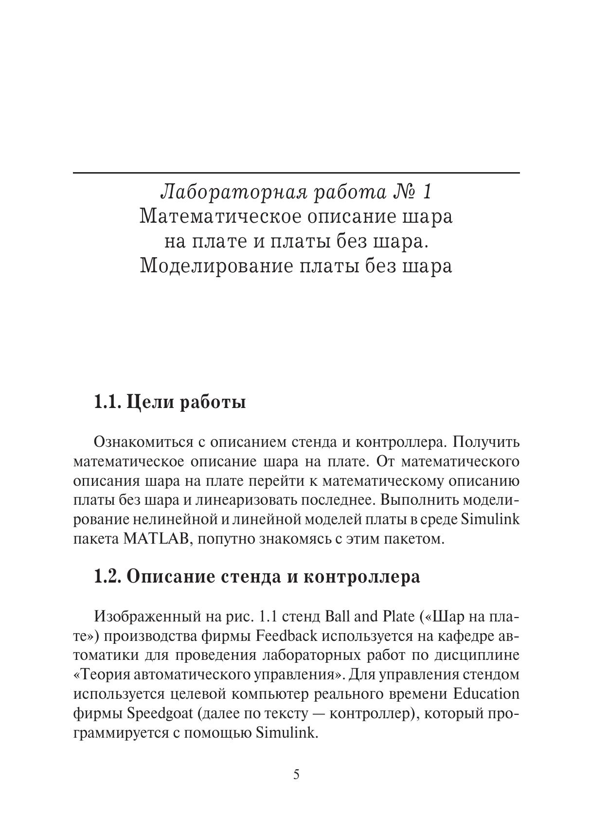 Лабораторный практикум содержит описание выполнения четырех лабораторных работ: три работы по разделу «Линейные непрерывные системы» дисциплины «Теория автоматического управления»; четвертая работа по разделу «Линейные цифровые системы». Работы выполняются на стенде «Шар на плате», который управляется целевым компьютером реального времени Education от Speedgoat в пакете MATLAB.