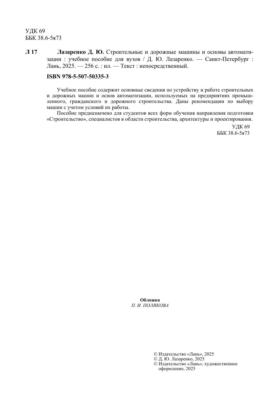 Учебное пособие содержит основные сведения по устройству и работе строительных и дорожных машин и основ автоматизации, используемых на предприятиях промышленного, гражданского и дорожного строительства. Даны рекомендации по выбору машин с учетом условий их работы. Пособие предназначено для студентов всех форм обучения направления подготовки «Строительство», специалистов в области строительства, архитектуры и проектирования.