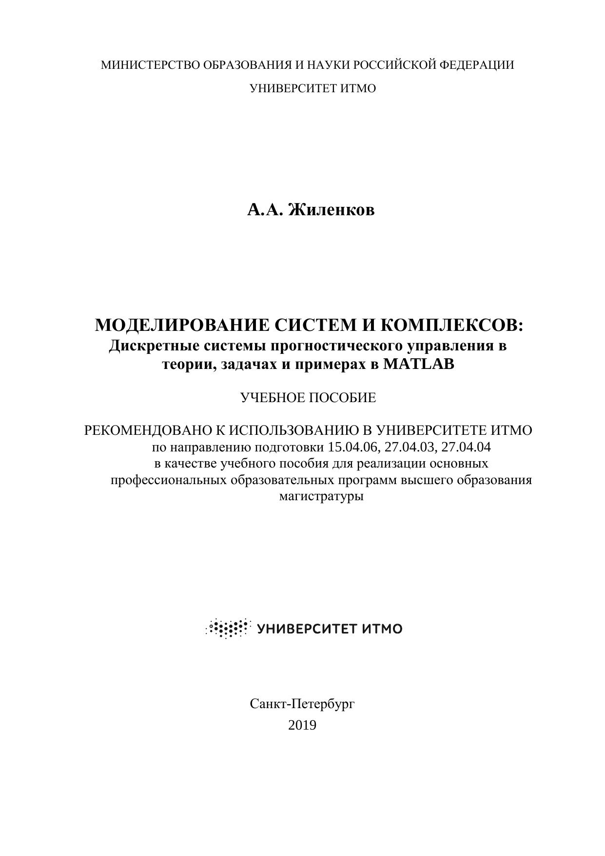 Жиленков A. А.Моделирование систем и комплексов. Дискретные системы прогностического управления в теории, задачах и примерах в MATLAB