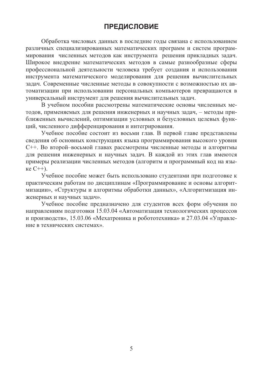 Описаны основные конструкции языка программирования высокого уровня С++. Рассмотрены численные методы и алгоритмы их программирования для решения инженерных и прикладных задач.