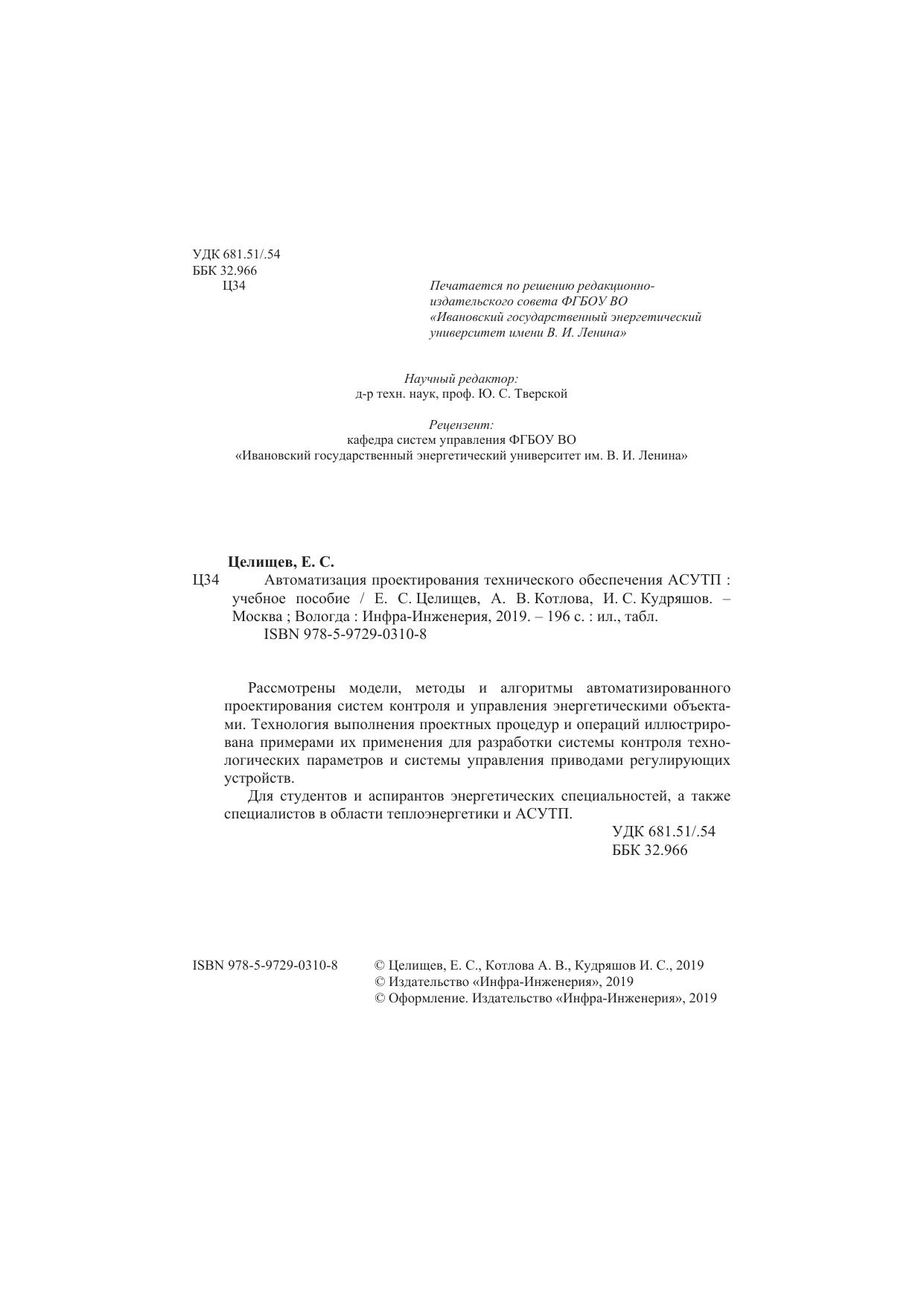 Рассмотрены модели, методы и алгоритмы автоматизированного проектирования систем контроля и управления энергетическими объектами. Технология выполнения проектных процедур и операций иллюстрирована примерами их применения для разработки системы контроля технологических параметров и системы управления приводами регулирующих устройств.