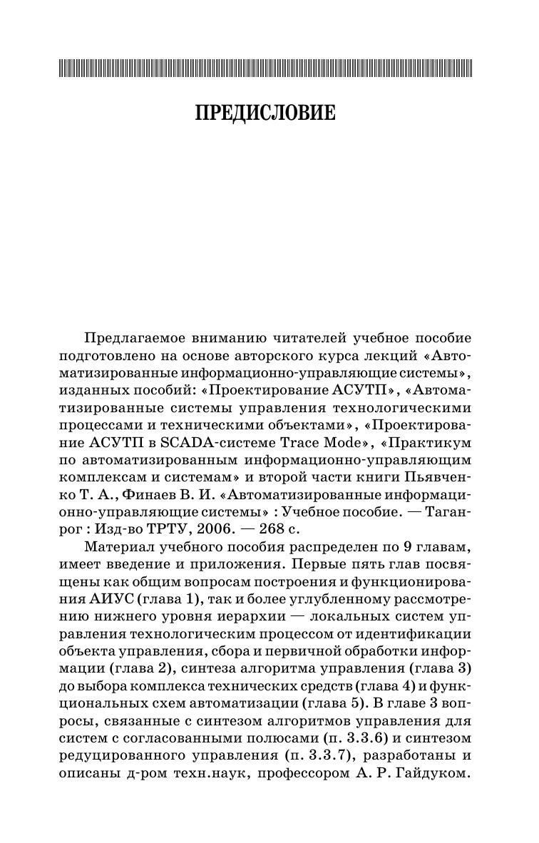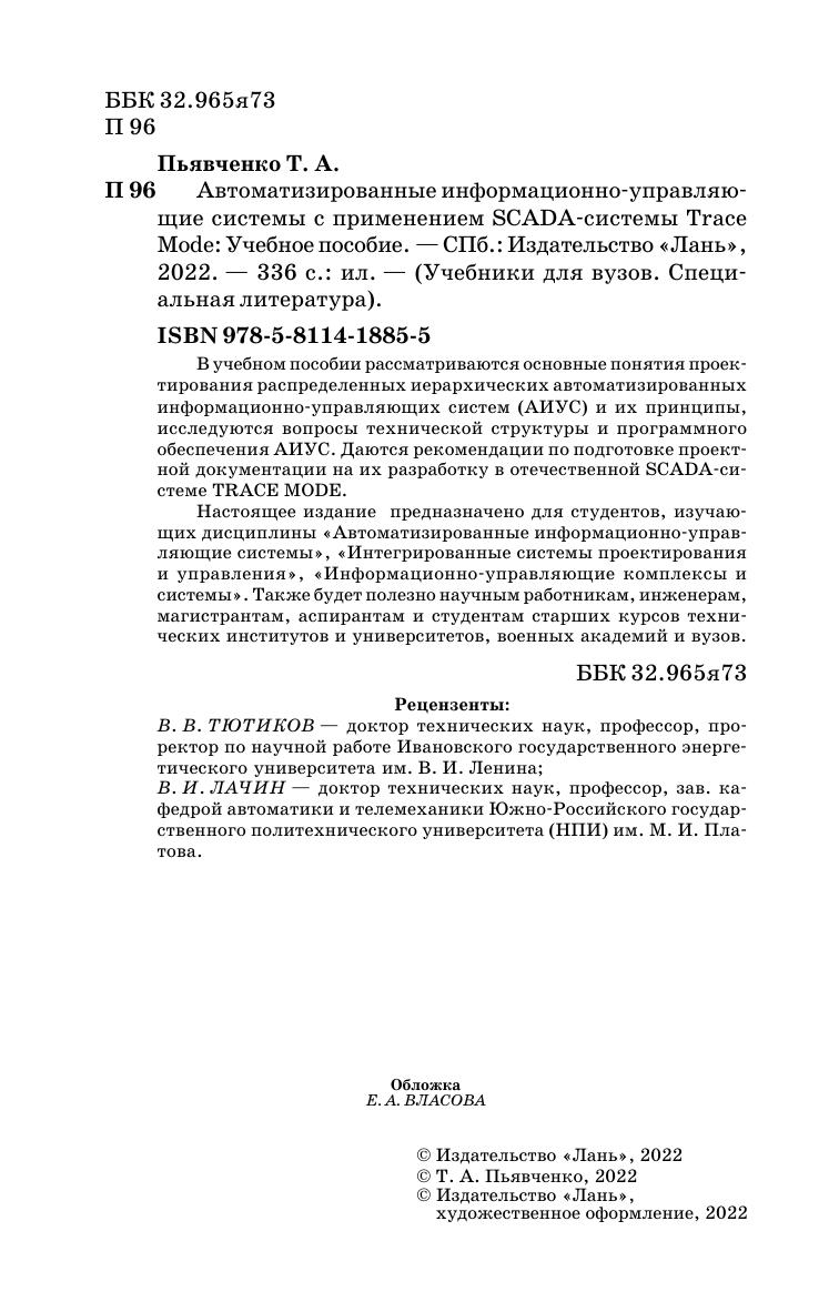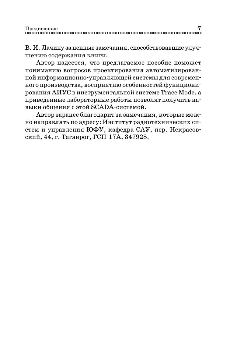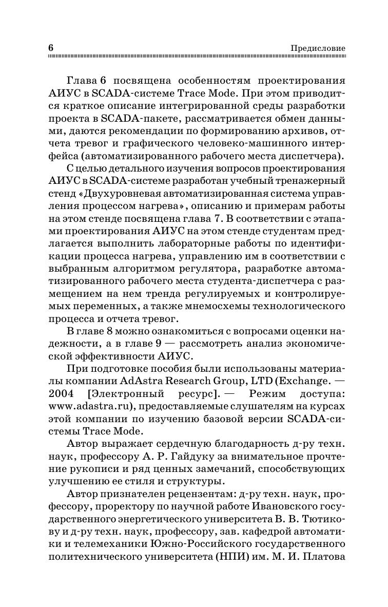 В книге рассматриваются основные понятия, принципы проектирования распределенных иерархических автоматизированных информационно-управляющих систем (АИУС), исследуются вопросы технической структуры и программного обеспечения АИУС. Даются рекомендации по подготовке проектной документации на их разработку в отечественной SCADA системе TRACE MODE. В книге приводится описание учебного стенда «Двухуровневая автоматизированная система контроля и управления процессом нагрева», созданного на кафедре систем автоматического управления Института радиотехнических систем и управления ЮФУ. На его базе студенты имеют возможность получить навыки проектирования систем сбора данных и оперативного диспетчерского управления с использованием локальных сетей и управляющих ПК, оценить возможности SCADA системы Trace Mode при применении её в автоматизированных информационно-управляющих системах. Настоящее издание предназначено для студентов, изучающих дисциплины «Автоматизированные информационно-управляющие системы», «Интегрированные системы проектирования и управления», «Информационно-управляющие комплексы и системы», оно также будет полезно научным работникам, инженерам, магистрантам, аспирантам и студентам старших курсов технических институтов и университетов, военных академий и вузов.