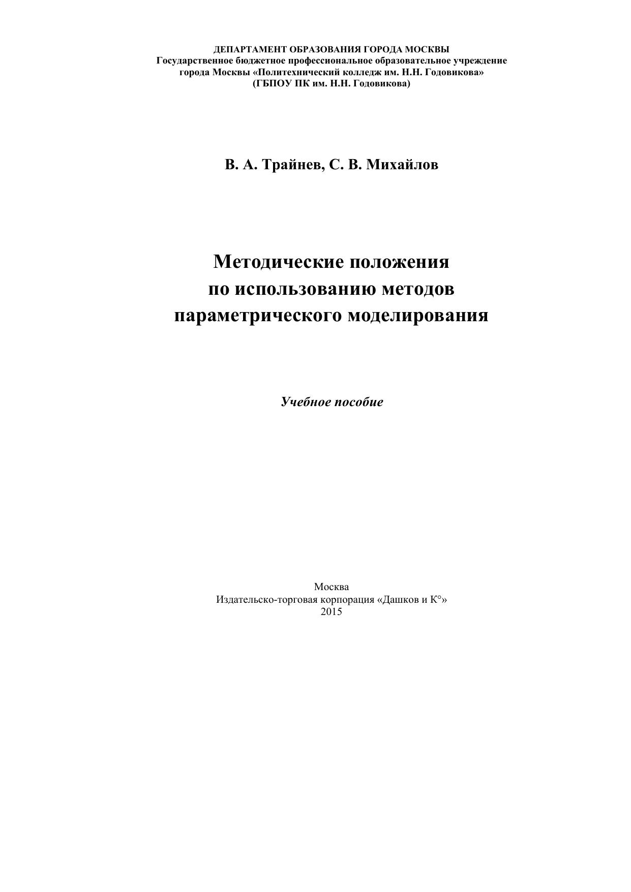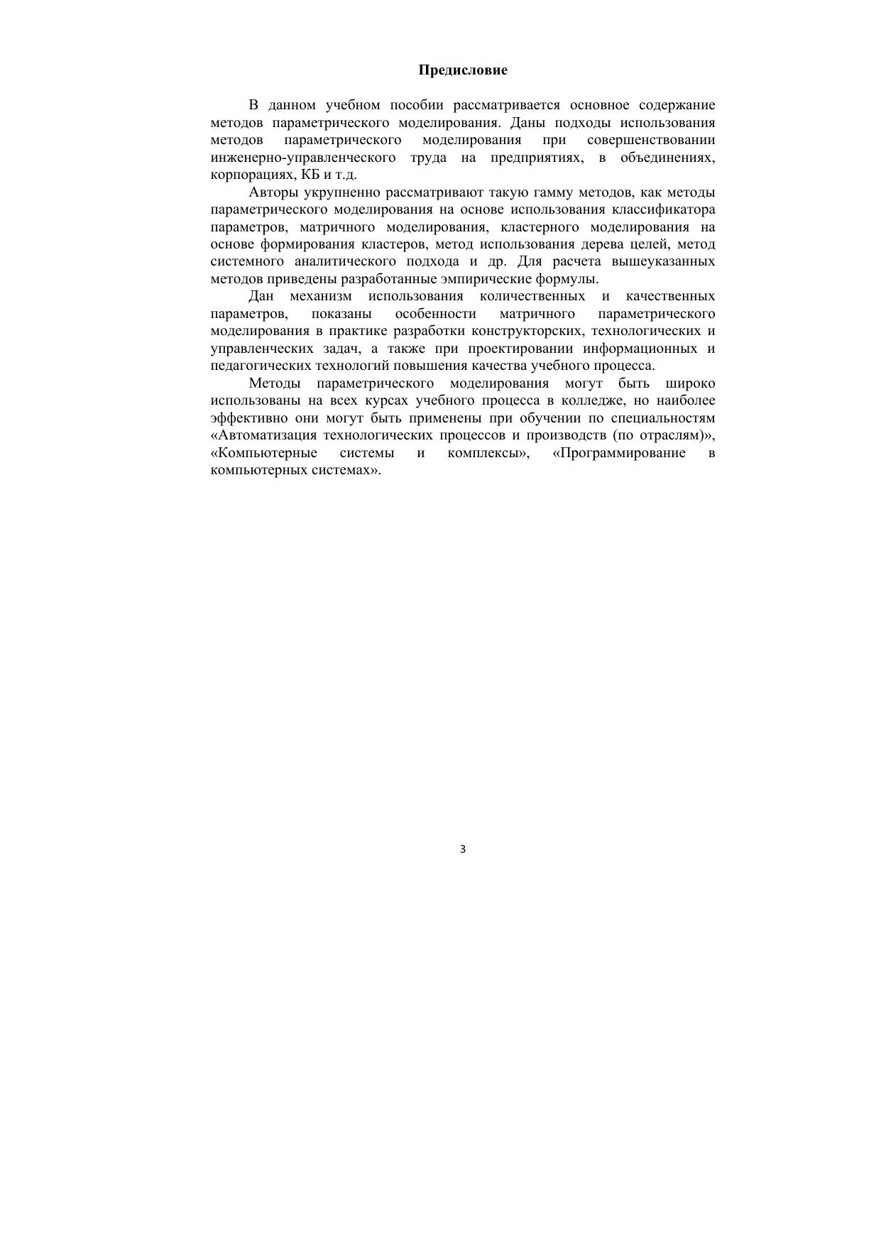 В данном учебном пособии рассматривается основное содержание методов параметрического моделирования. Даны подходы использования методов параметрического моделирования при совершенствовании инженерно-управленческого труда на предприятиях, в объединениях, корпорациях, КБ и т.д. Авторы укрупненно рассматривают такую гамму методов, как методы параметрического моделирования на основе использования классификатора параметров, матричного моделирования, кластерного моделирования на основе формирования кластеров, метод использования дерева целей, метод системного аналитического подхода и др. Для расчета вышеуказанных методов приведены разработанные эмпирические формулы.