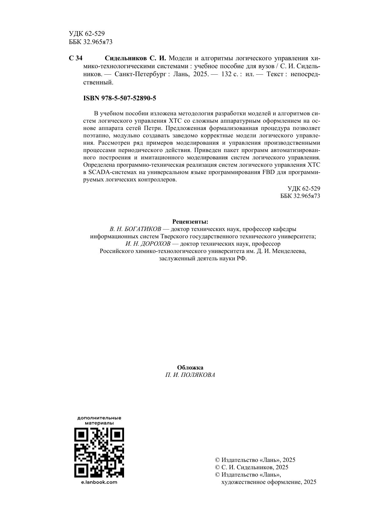 В учебном пособии изложена методология разработки моделей и алгоритмов систем логического управления ХТС со сложным аппаратурным оформлением на основе аппарата сетей Петри. Предложенная формализованная процедура позволяет поэтапно, модульно создавать заведомо корректные модели логического управления. Рассмотрен ряд примеров моделирования и управления производственными процессами периодического действия. Приведен пакет программ автоматизированного построения и имитационного моделирования систем логического управления. Определена программно-техническая реализация систем логического управления ХТС в SCADA-системах на универсальном языке программирования FBD для программируемых логических контроллеров.