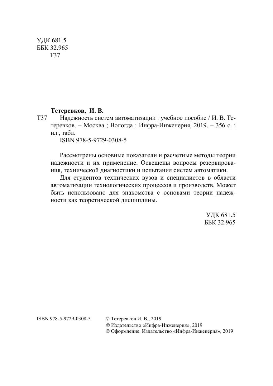 Для студентов технических вузов и специалистов в области автоматизации технологических процессов и производств. Может быть использовано для знакомства с основами теории надежности как теоретической дисциплины.