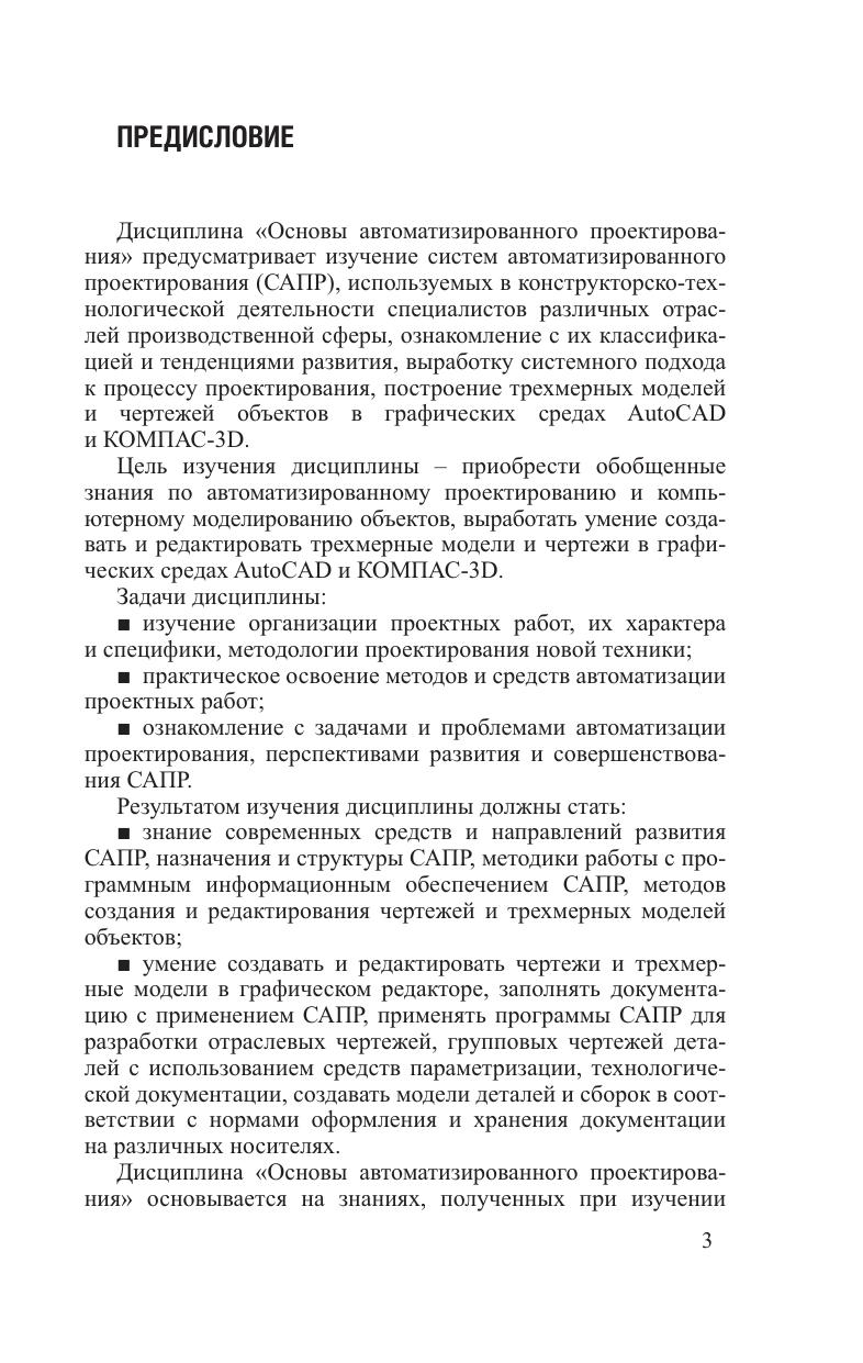Представлены материалы по графическим пакетам AutuCAD и КОМПАС-3D, соответствующие учебной программе по дисциплине "Основы автоматизированного проектирования". Доступность изложения позволяет использовать пособие для самостоятельной работы учащихся. Для учащихся ССО.