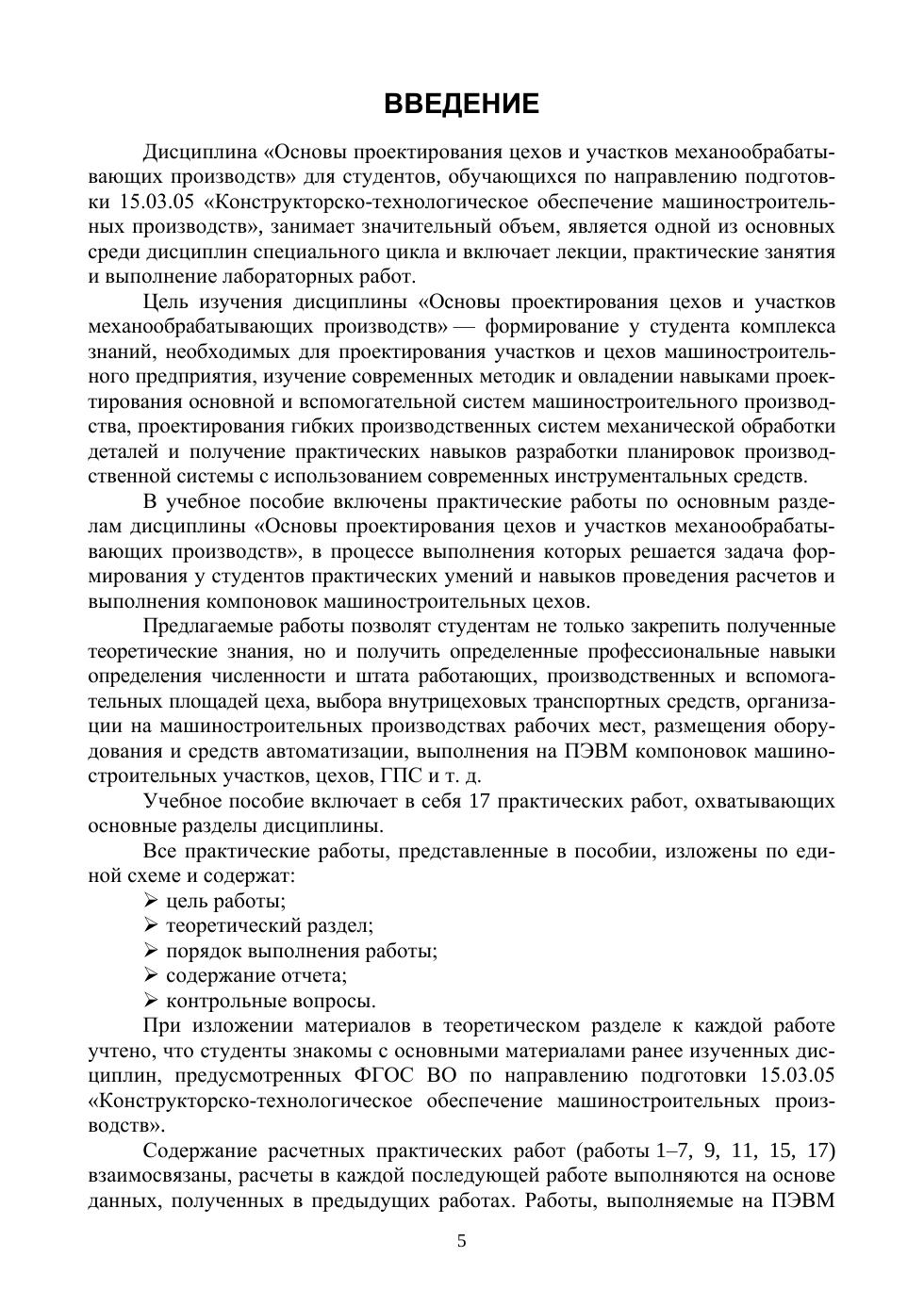 В учебном пособии приведено содержание практических работ, в которых нашли отражение вопросы проектирования участков и цехов механообрабатывающих производств предприятий машиностроения. Приведена производственная структура цеха и порядок расчета ее систем: количества оборудования, численности промышленно-производственного персонала, производственных площадей, служебно-бытовых помещений. Представлены вопросы для самоподготовки студентов к контрольным тестированиям. Учебное пособие предназначено для студентов учреждений высшего профессионального образования, обучающихся по направлению «Конструкторско-технологическое обеспечение машиностроительных производств». Может использоваться для самостоятельной работы студентов, при выполнении курсовых и выпускных квалификационных работ. Представляет интерес для инженерно-технических работников машиностроительных предприятий, преподавателей и аспирантов технических вузов.