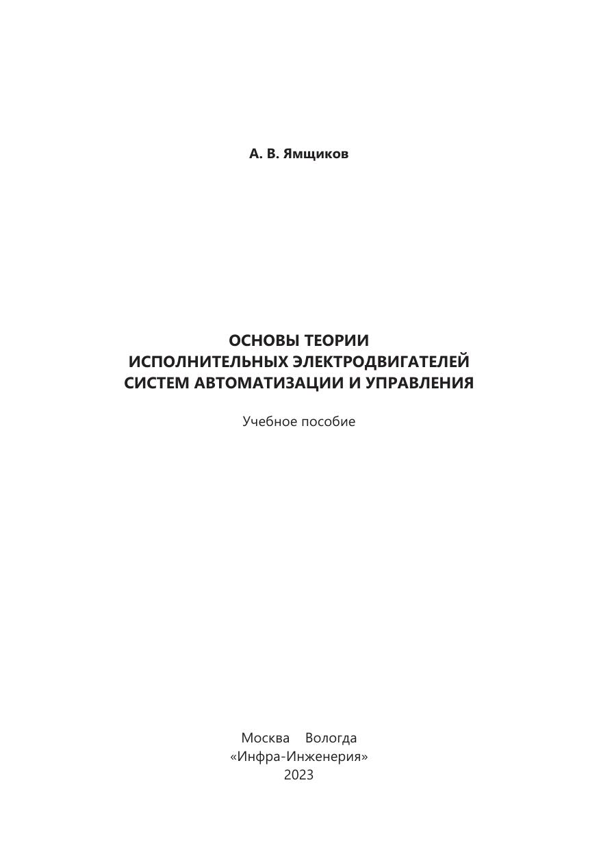 Основы теории исполнительных электродвигателей систем автоматизации и управления