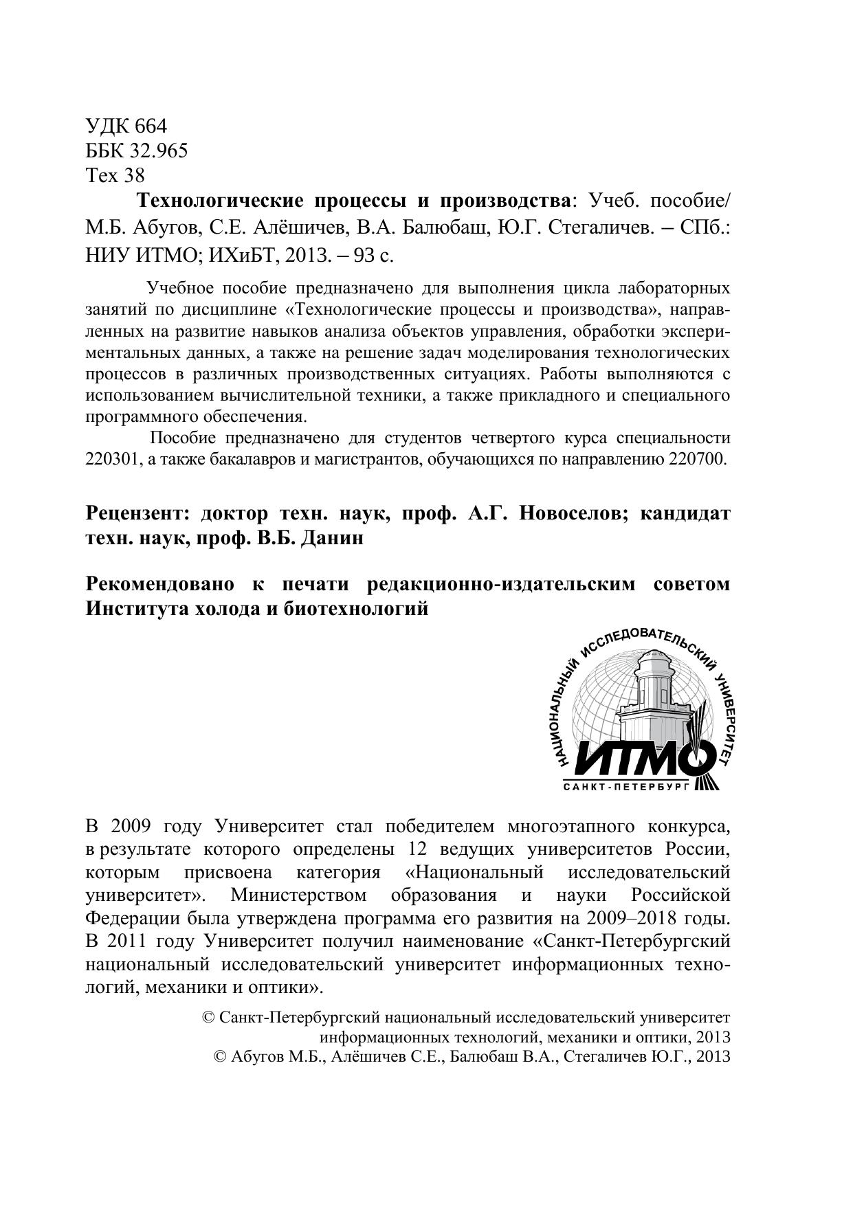 Учебное пособие предназначено для выполнения цикла лабораторных занятий по дисциплине «Технологические процессы и производства», направленных на развитие навыков анализа объектов управления, обработки экспериментальных данных, а также на решение задач моделирования технологических процессов в различных производственных ситуациях. Работы выполняются с использованием вычислительной техники, а также прикладного и специального программного обеспечения. Пособие предназначено для студентов четвертого курса специальности 220301, а также бакалавров и магистрантов, обучающихся по направлению 220700.