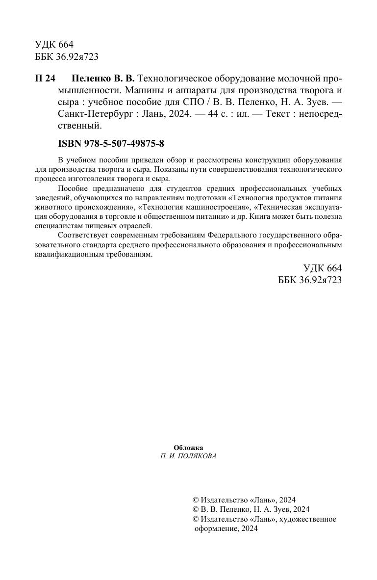 В учебном пособии приведен обзор и рассмотрены конструкции оборудования для производства творога и сыра. Показаны пути совершенствования технологического процесса изготовления творога и сыра. Пособие предназначено для студентов средних профессиональных учебных заведений, обучающихся по направлениям подготовки «Технология продуктов питания животного происхождения», «Технология машиностроения», «Техническая эксплуатация оборудования в торговле и общественном питании» и др. Книга может быть полезна специалистам пищевых отраслей. Соответствует современным требованиям Федерального государственного образовательного стандарта среднего профессионального образования и профессиональным квалификационным требованиям.